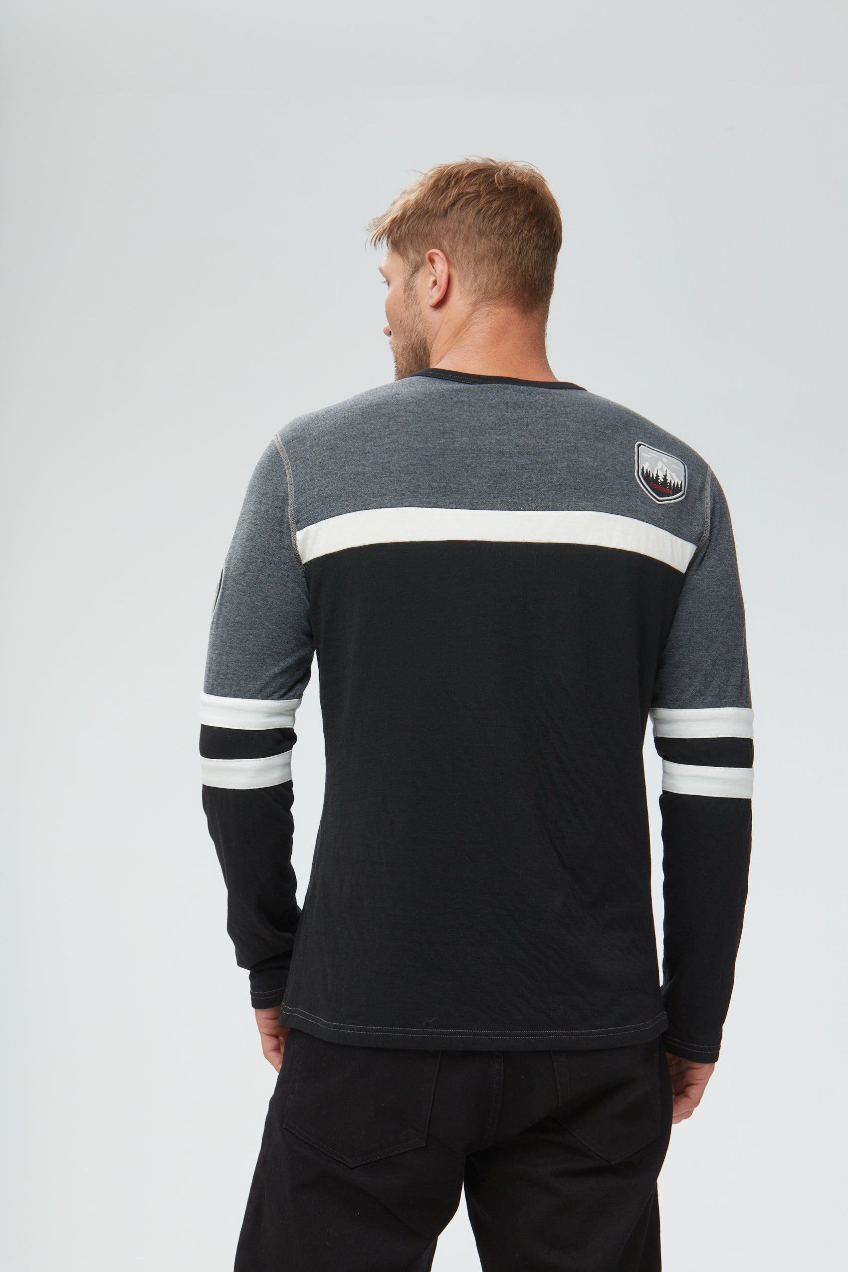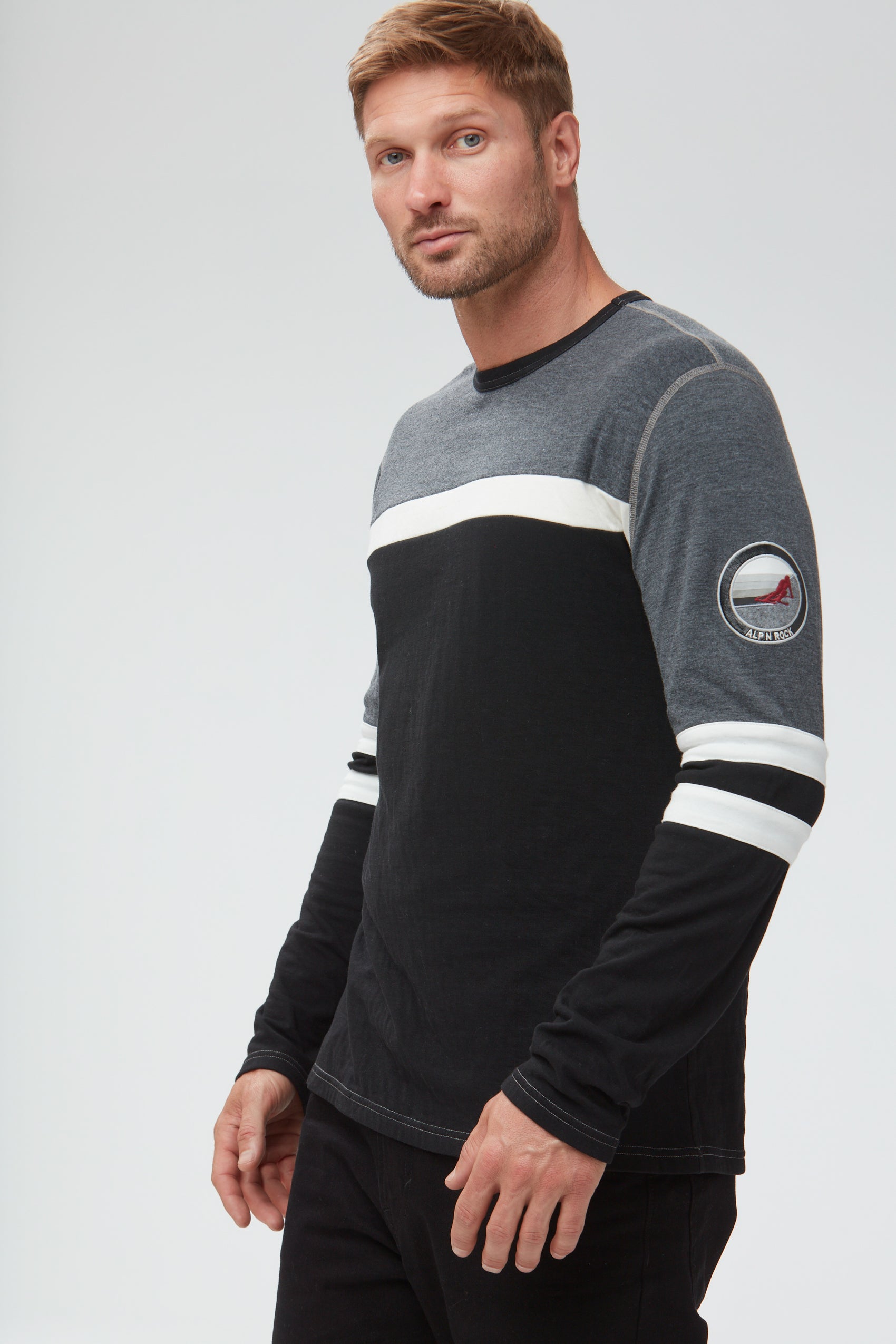 The Downhill Crewneck combines sport and style to create a foundational winter style. Made from a recycled cotton blend, this longsleeve is ideal for a chilly day on the slopes or a trip to the city. Our most-loved mens' silhouette is accented with signature Alp N Rock patch detailing and colorblocking.