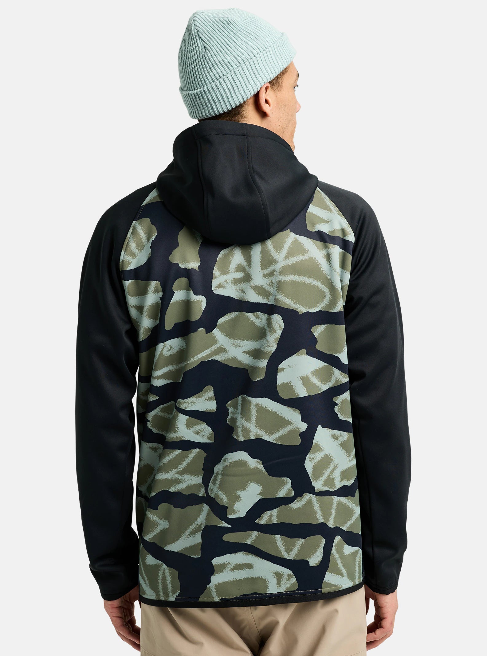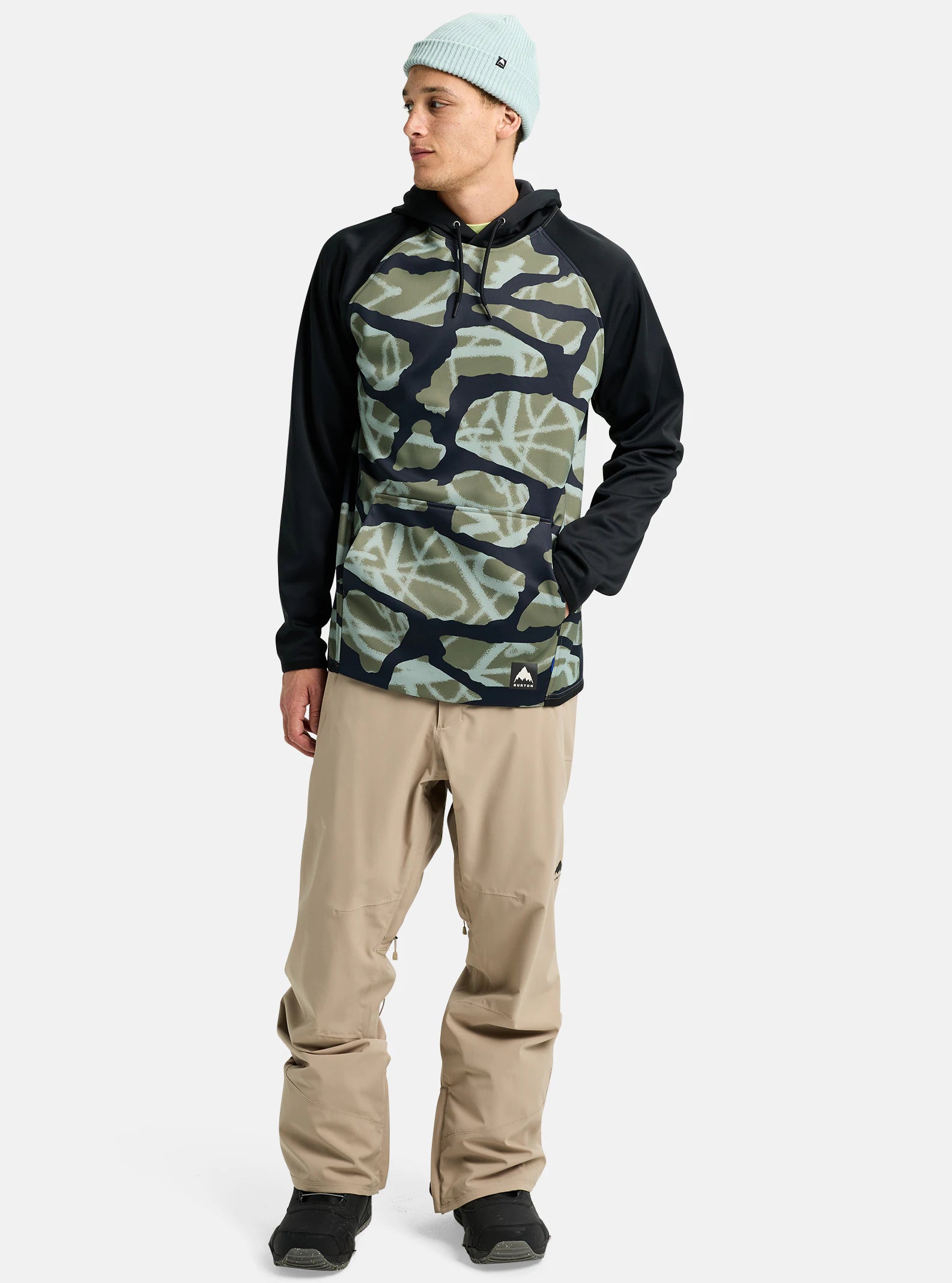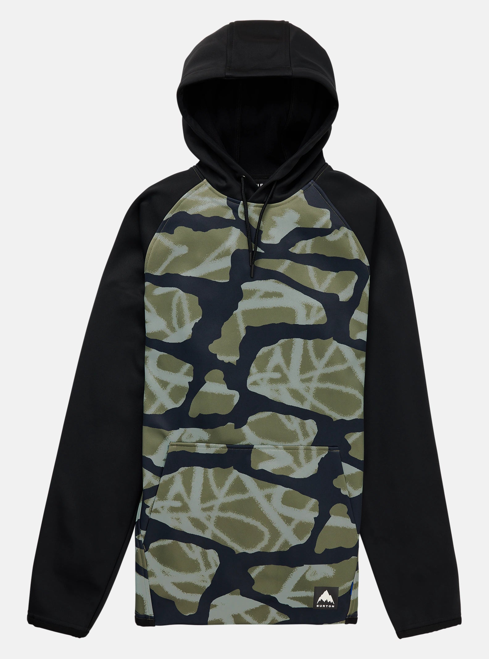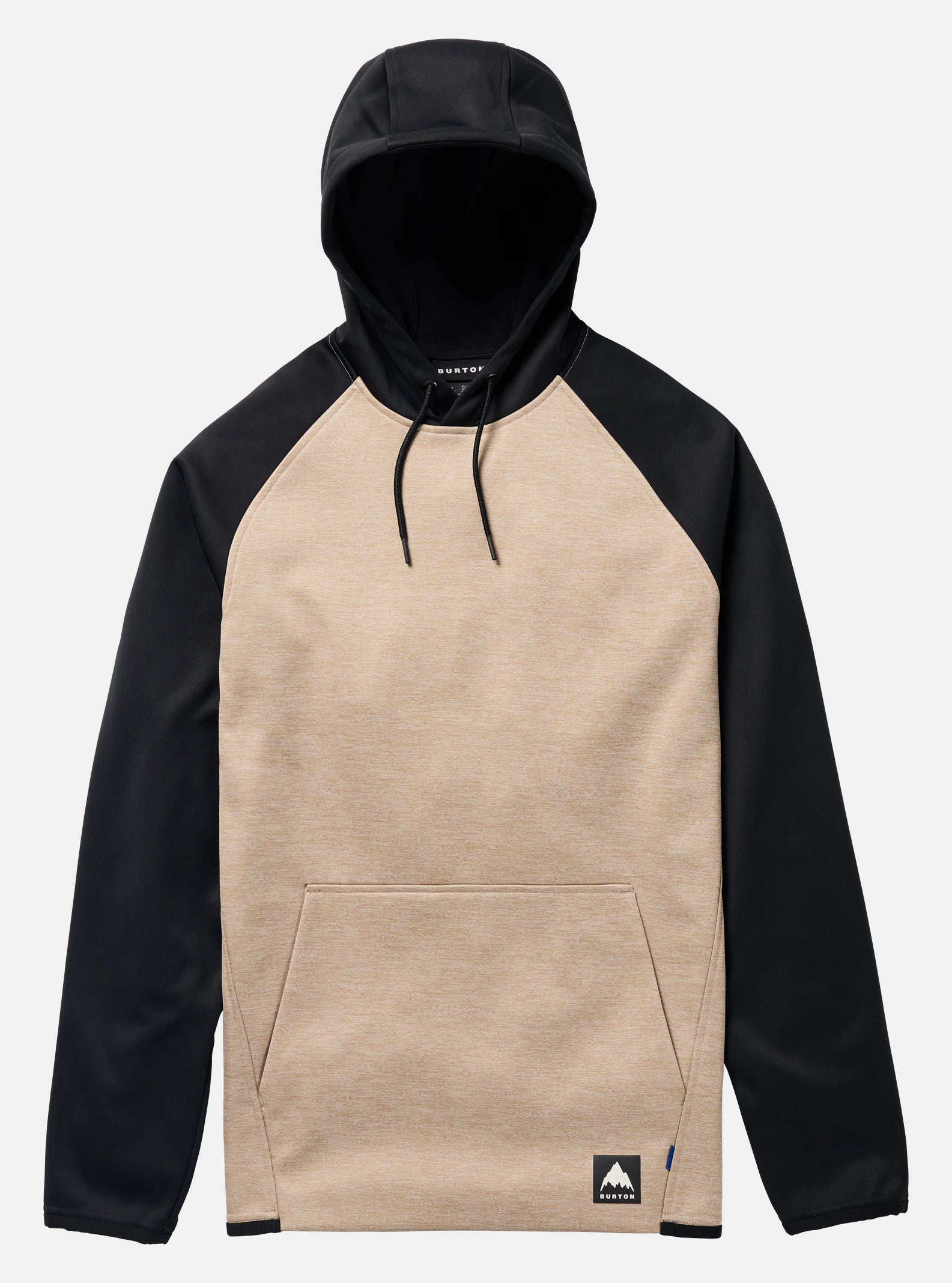 Riding all day in your cotton hoodie sounded like a good idea until you started getting wet and cold. Well, the men's Burton Crown Weatherproof Pullover Fleece is techy enough for mountain days and laid-back enough for chilling in town. It's the answer to riding all day in a sweatshirt. Pull up the hood and consider yourself ready for just about any weather.