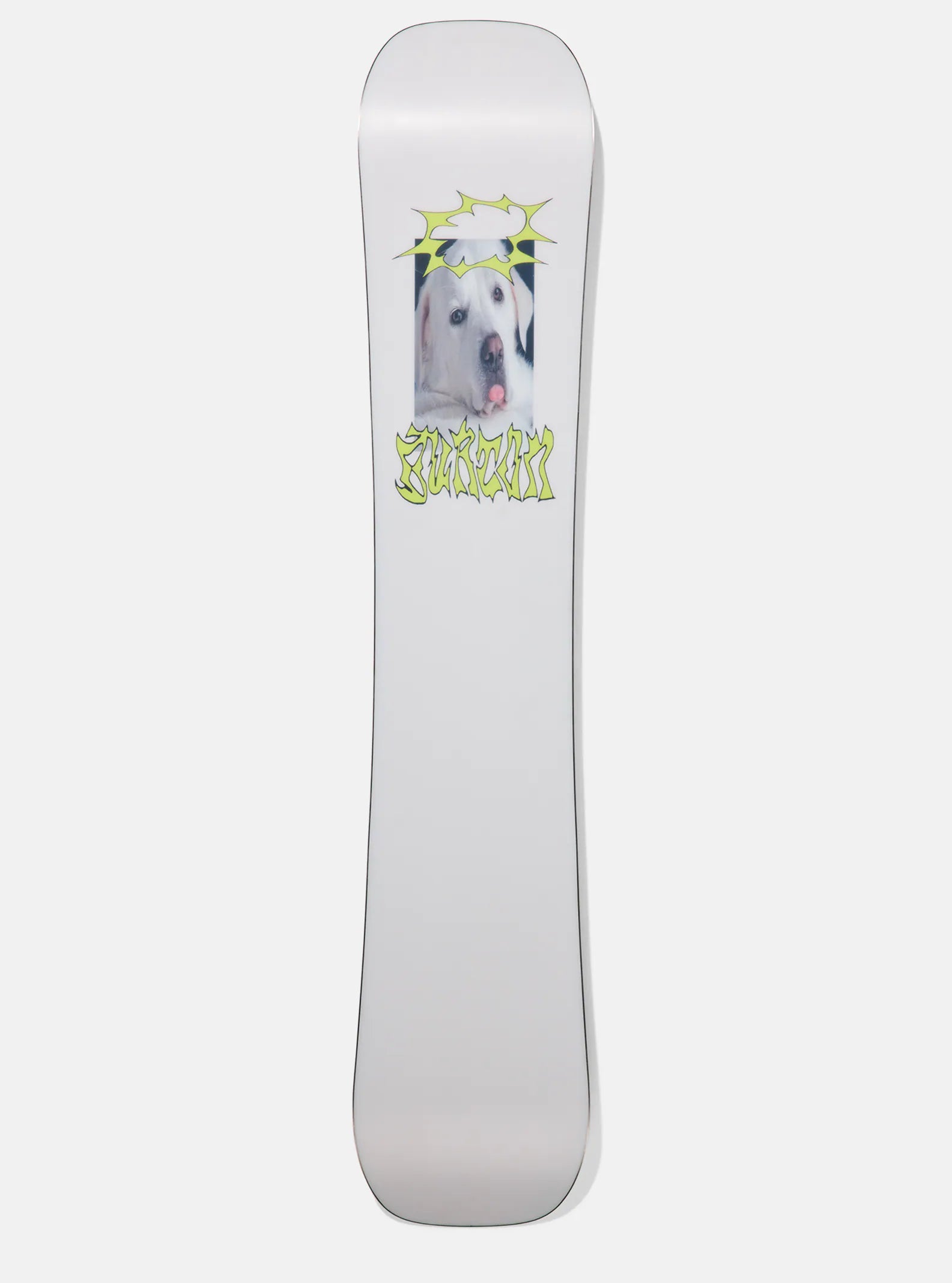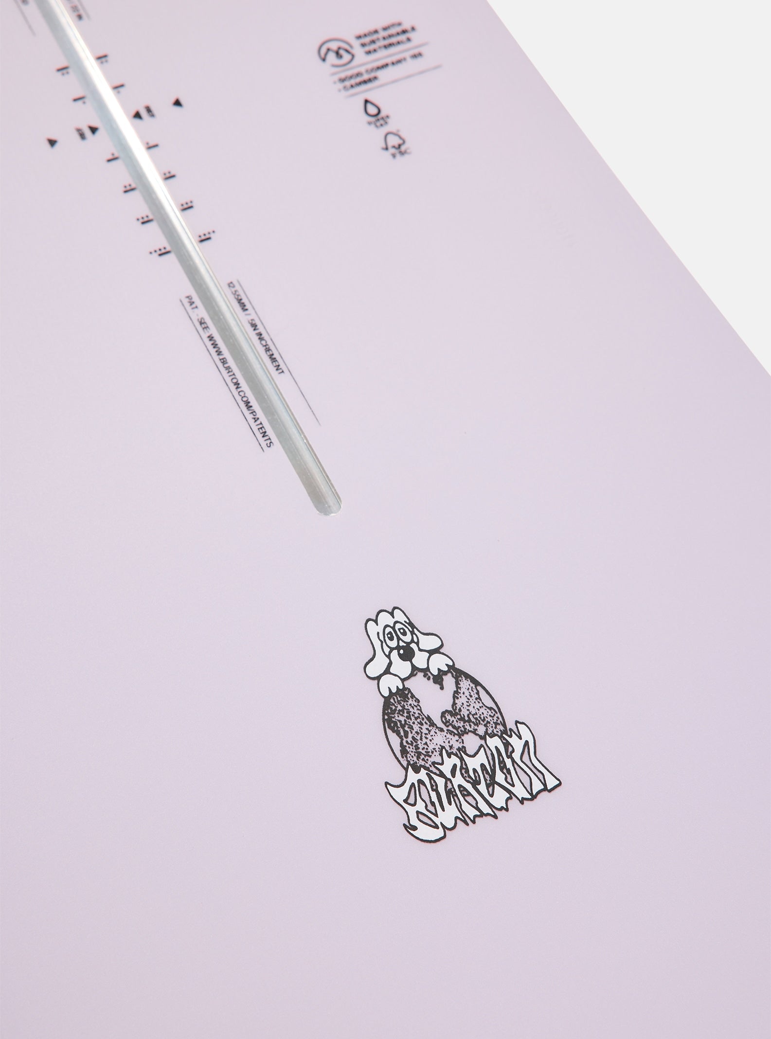 ABOUT THE GRAPHIC: Dogs are funny and cute. We also think they make good company, so the latest Good Company deck channels positive dog energy and good times with dog tags and a portrait of Burton lead designer Casey Callahan's dog Posie on the base.