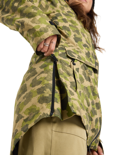 - Mesh-lined, no-snag Pit Zip vents; Drawcord cinch at waist