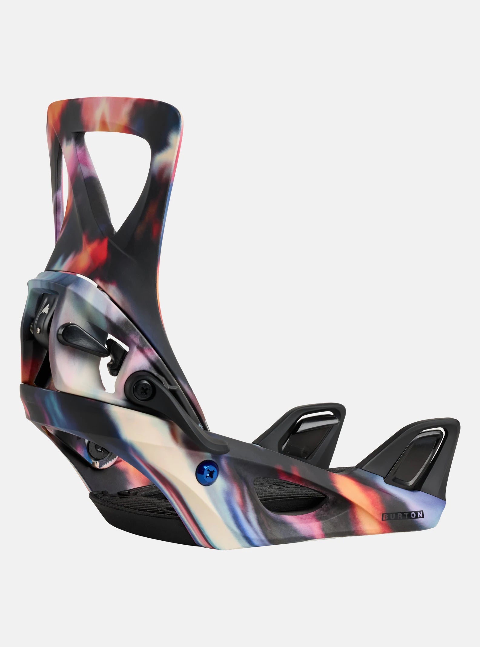 Step up to Step On®. The women's Burton Step On® Re:Flex Snowboard Bindings pair an intuitive boot-to-binding connection with all-mountain performance. Three connection points, two at the toe and one at the heel, deliver unmatched simplicity, security, and board control.