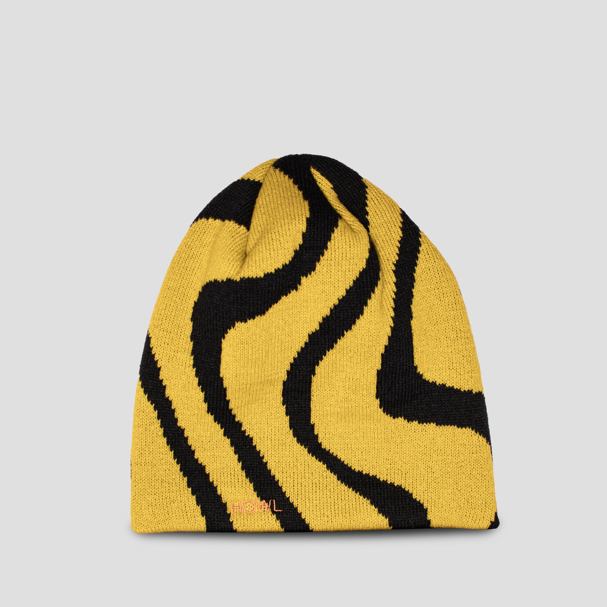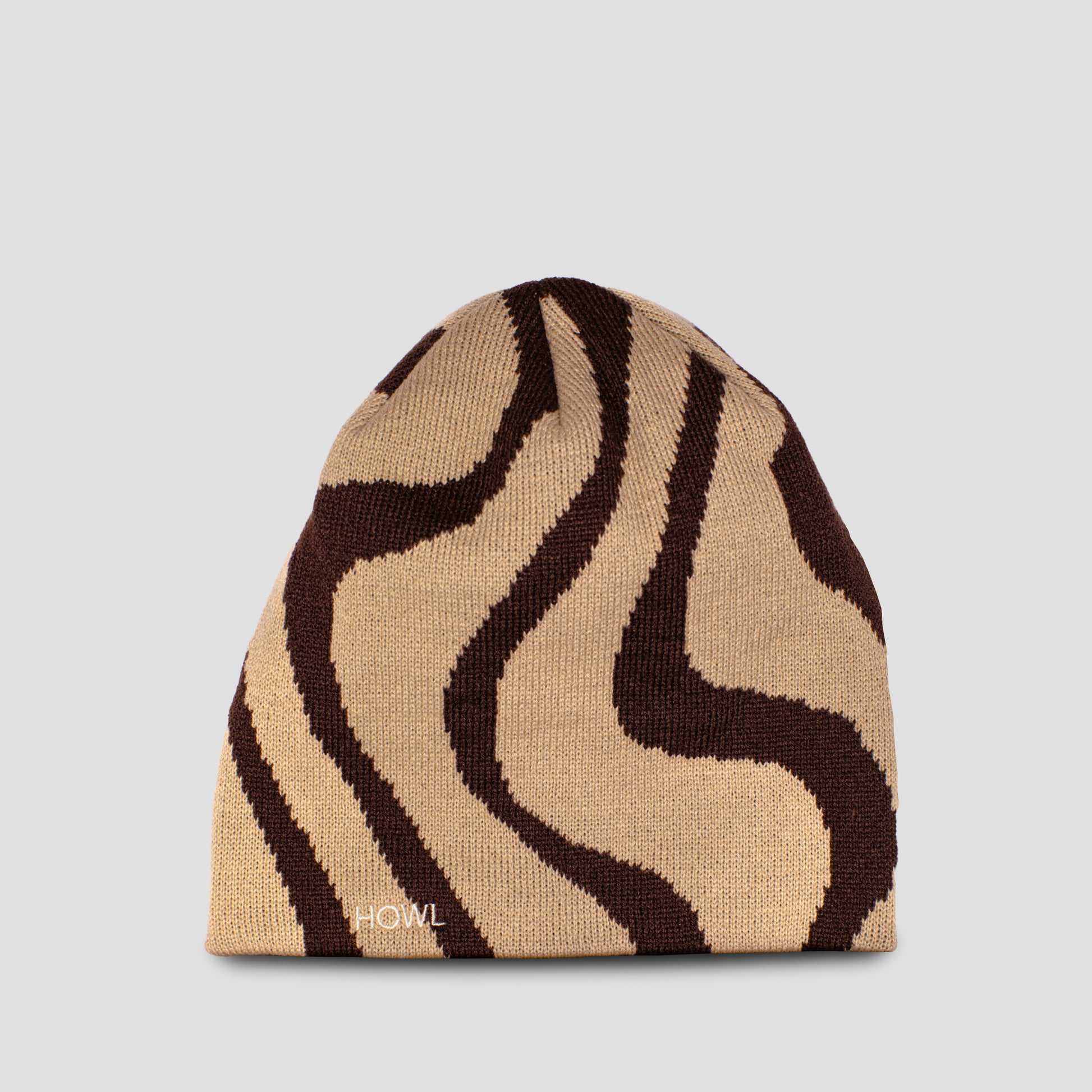 Acrylic flat knit with two-color graphic jacquard with no cuff, seamless construction