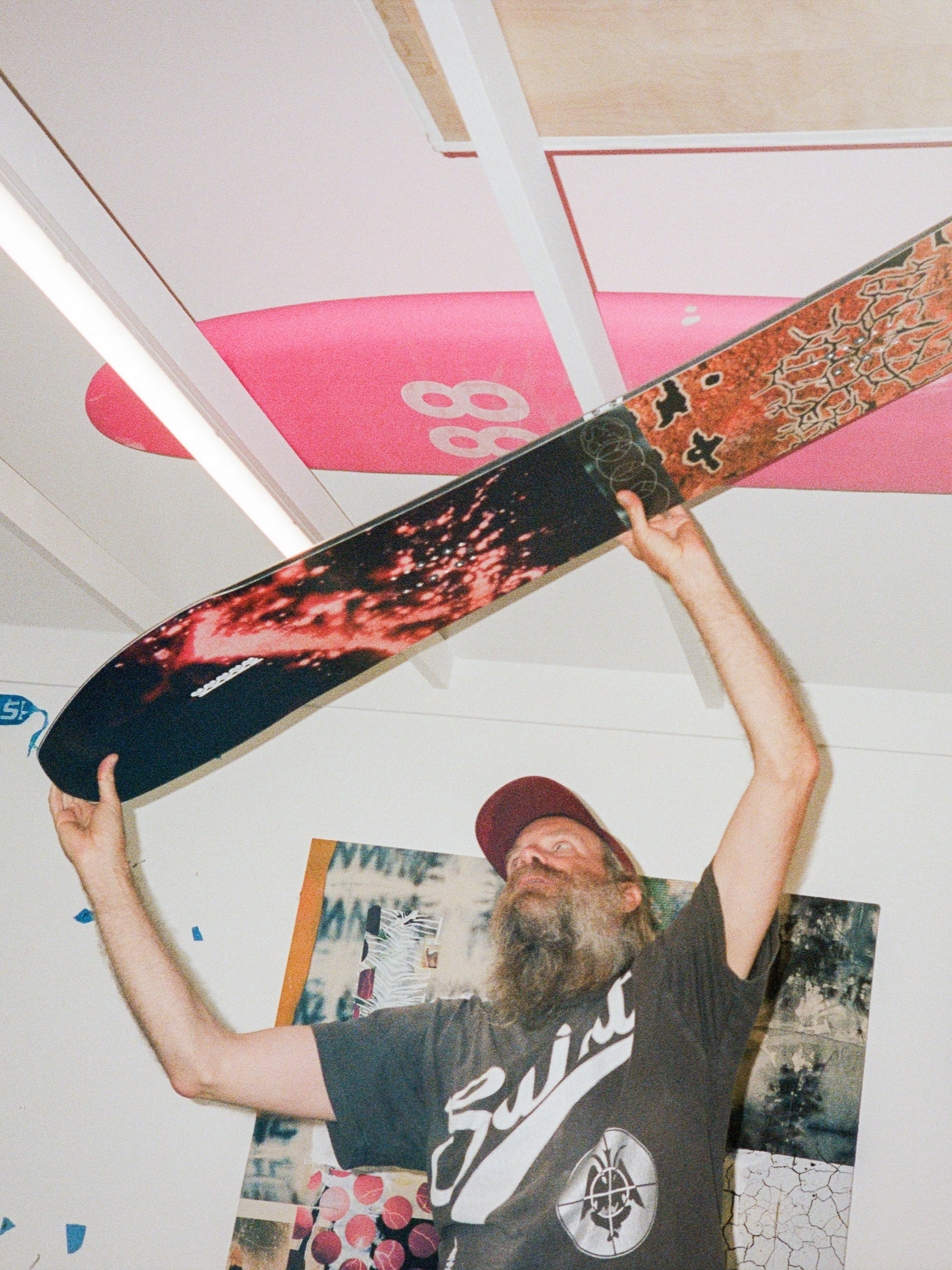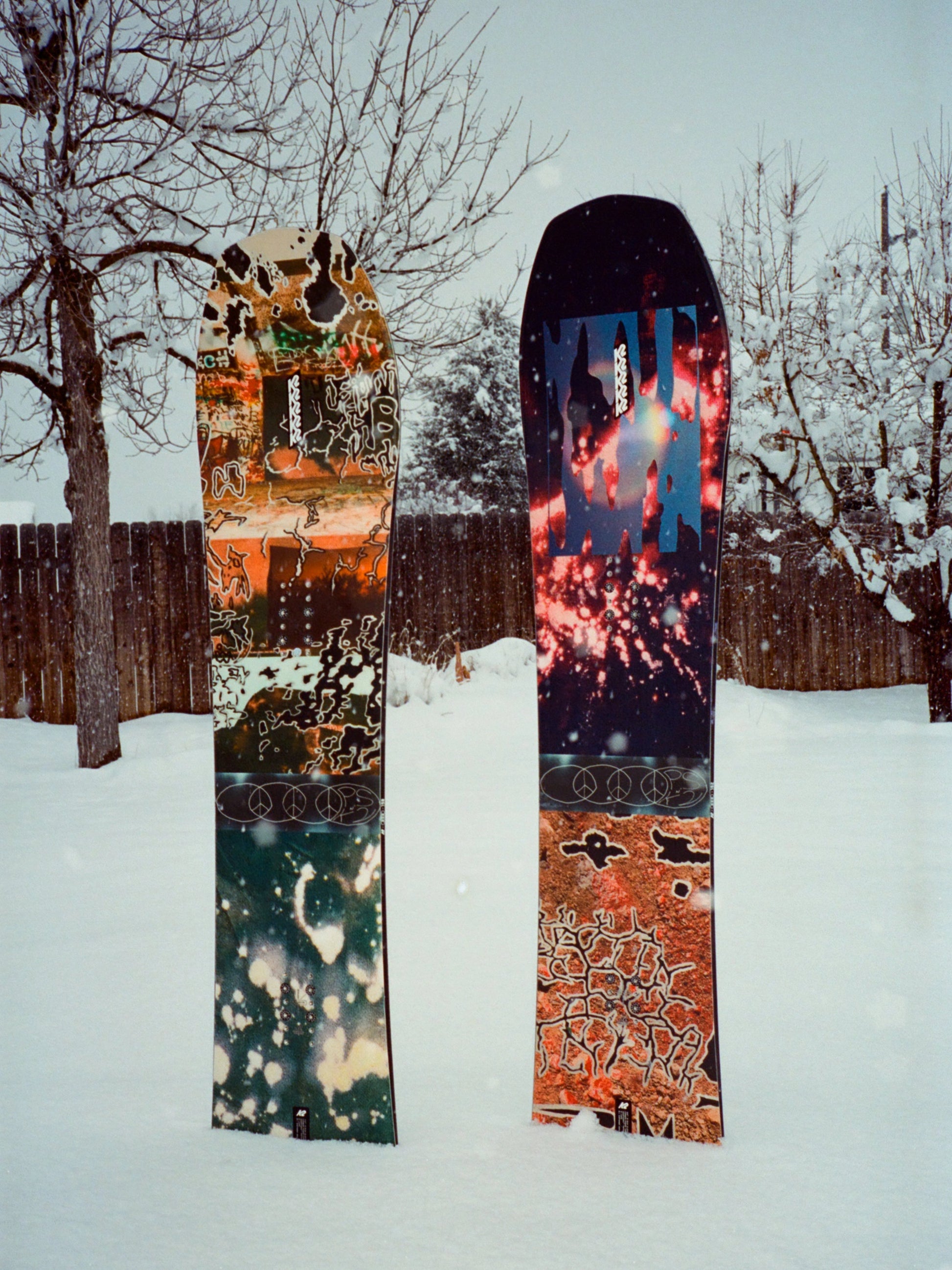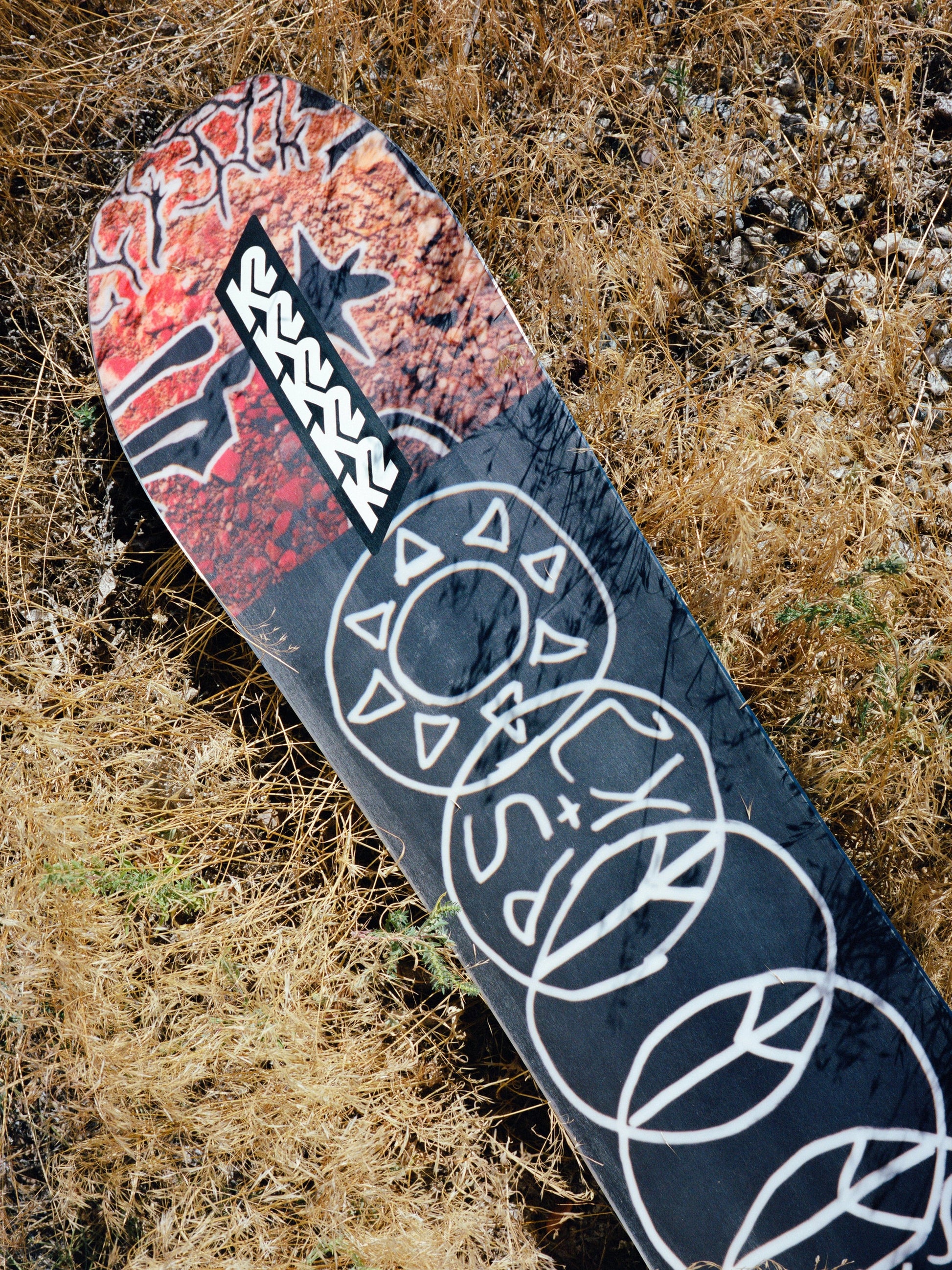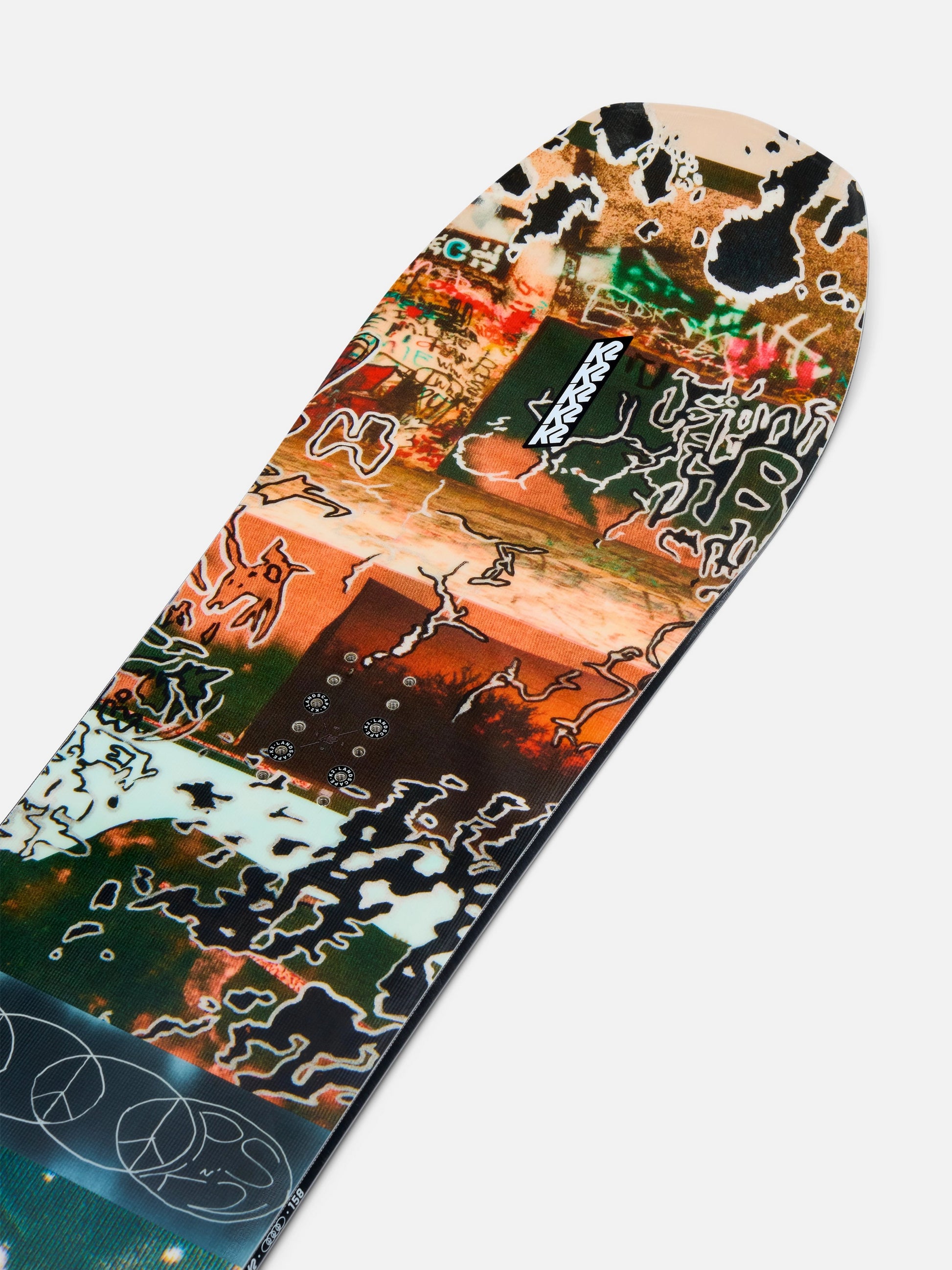 When it came to the graphic package, we turned to Photographer, Painter, Illustrator, Collage Artist, Father, Mountain Biker, Friend, Snowboarder, and long-time K2 collaborator Peter Sutherland. We gave the proverbial keys to the proverbial car to Peter and leaned in on his mixed-media work. Peter constructed an Excavator that truly expresses his personal style - cut and paste paper, photography, paint, and marker - scanned and printed on our matte topsheet so you can add some stickers to the piece and put your own spin on it.