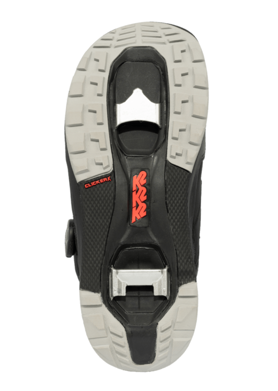 Underfoot, we’ve integrated our Clicker™ X technology into an outsole. Secure and strong integrated toe and heel mounts are integrated into a full rubber outsole. This dual-compound rubber material is grippy and durable for ice traction in the parking lot and those semi-sketchy boot packs. To put the cherry on top, an impact absorbing EVA midsole is lined with K2’s SpaceHeater™ material to keep your foot warm and comfortable all day.