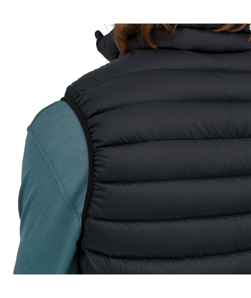 - Comfortable nylon-bound elastic armholes seal in warmth, and the hem adjusts with a cord lock