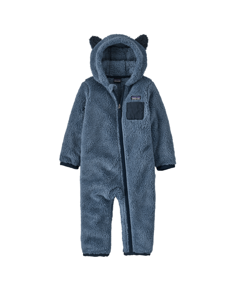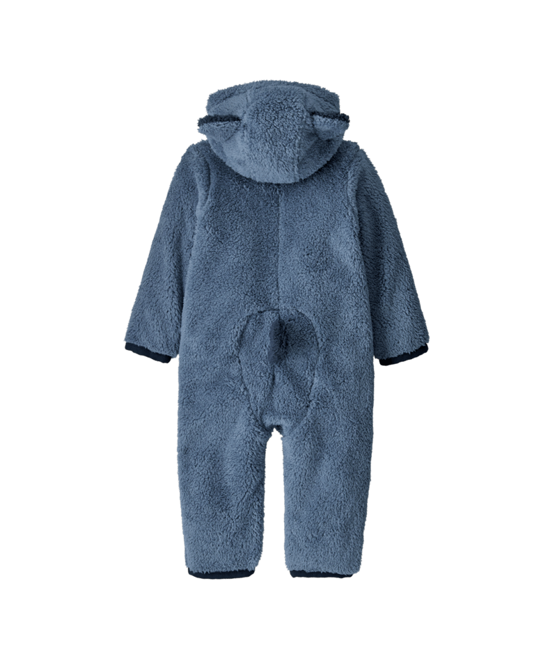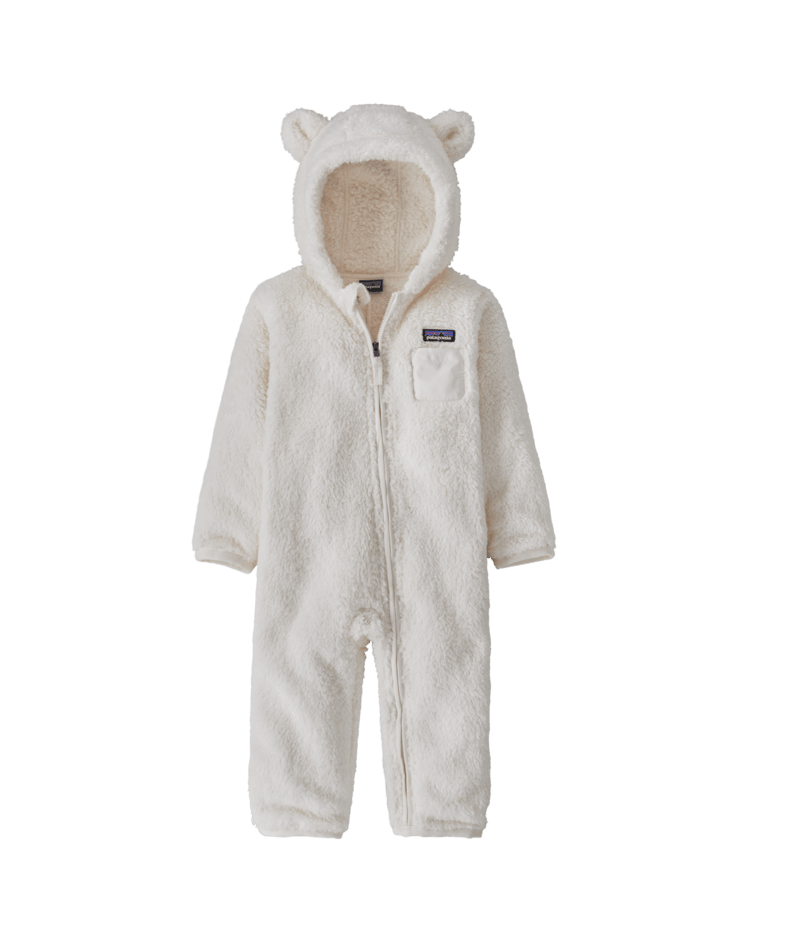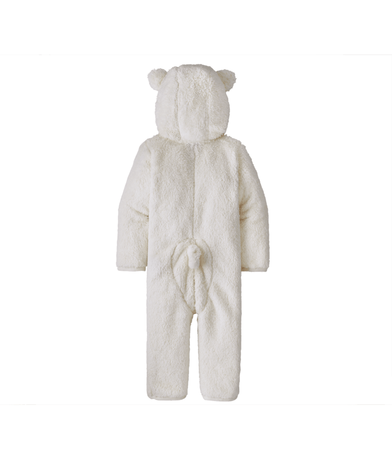 One-piece cozy bunting made of 100% recycled polyester high-pile fleece for cold-weather warmth. Three-panel hood, animal ears and tail styling, plus a binky-sized chest pocket. Made in a Fair Trade Certified™ factory.