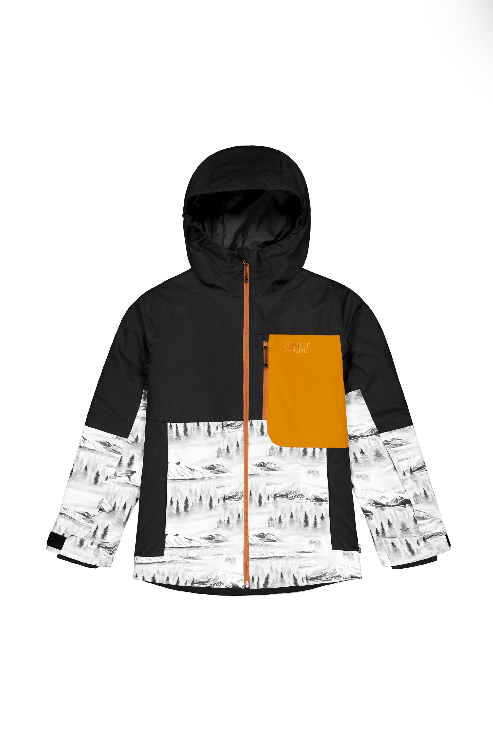 - Storage is no issue with this jacket. Hand pockets with zips under flaps and a chest pocket with a reversed zip offer ample space for essentials. The ergonomic hood, adjustable through a single-point system, pairs well with the fixed snow skirt to minimize snow entry. The jacket also includes a dedicated ski pass pocket and an interior mesh pocket for added convenience.