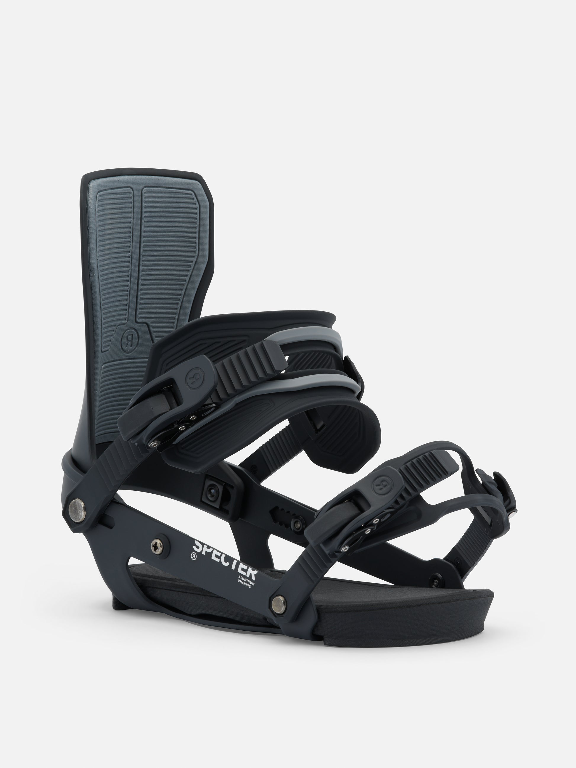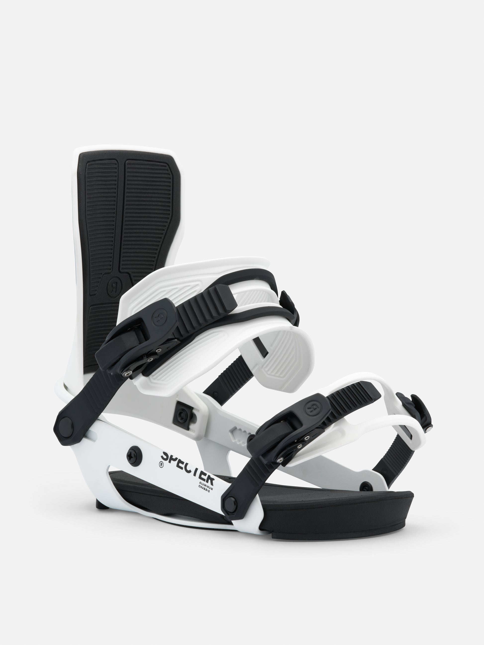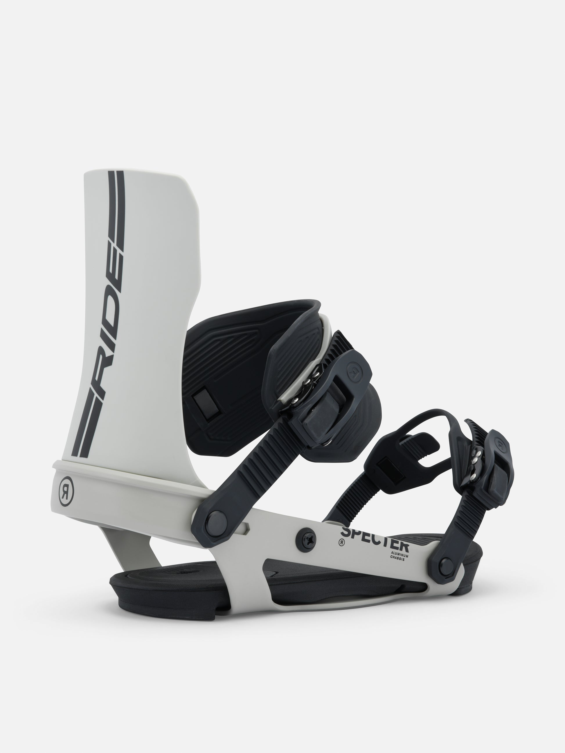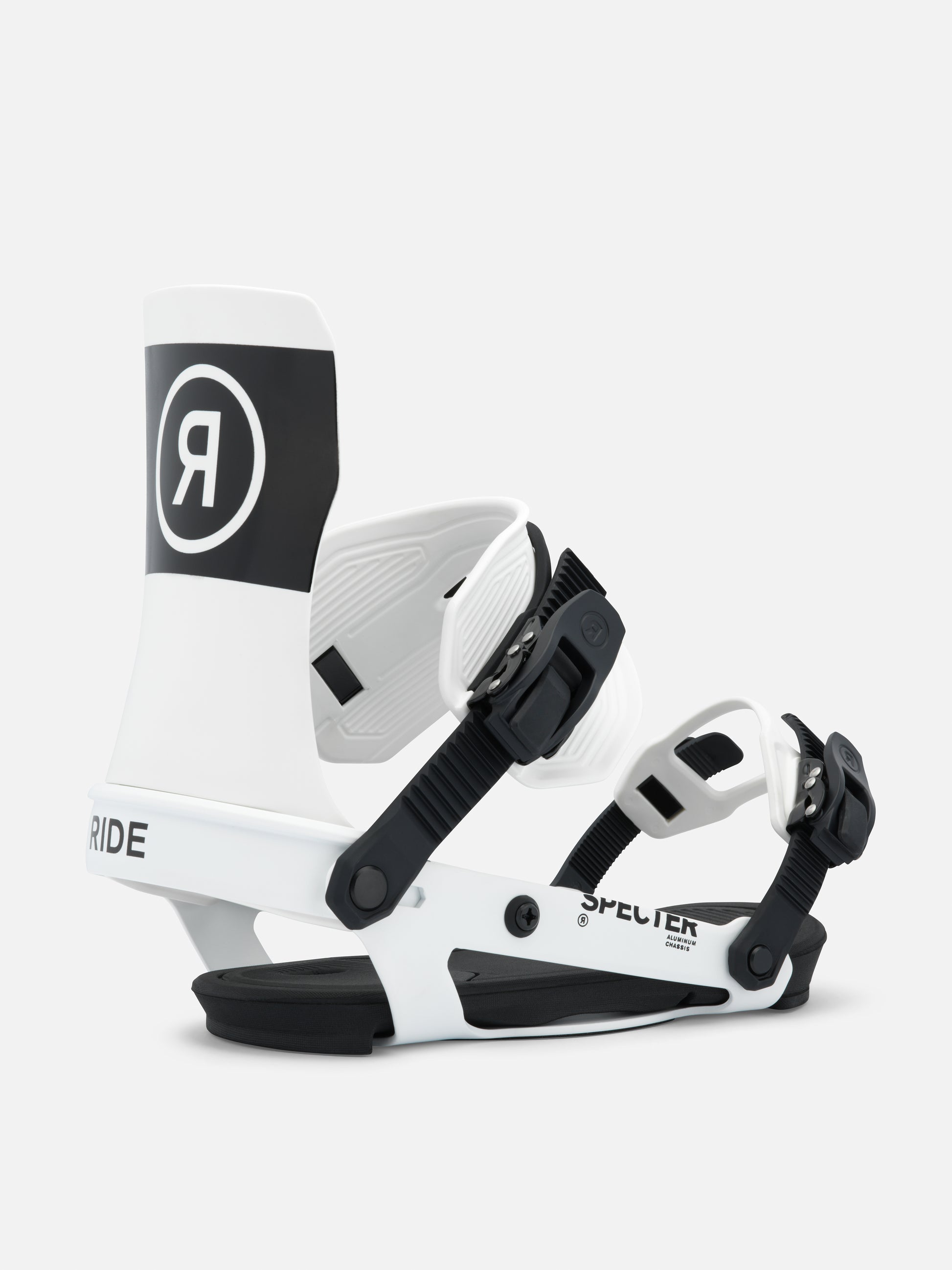 At a time when many of our competitors are focused on gimmicky, clunky, over designed bindings that prioritize the number of times you bend over per run over actual snowboarding performance- RIDE introduces the Specter. The lightest weight, highest performance freestyle binding ever made. We stripped the Specter down to assure performance is the priority. The Specter is built off our A-Series chassis, this aluminum chassis offers light weight durability backed by our lifetime warranty. The unique properties of aluminum allow the binding to flex with your board providing the ultimate freestyle feel. We’ve optimized the forward lean angle and flex to be perfect for freestyle riding and with the new flat nylon highback we’ve eliminated the forward lean block. Let’s be honest, you were going to take that thing off anyway to save the weight. The all-new ankle strap uses a urethane material to create a medium flexing frame, cushioned with a softer material to provide better pressure distribution when tightened. Making this strap one of the most comfortable in the line. The minimalist toe strap will fit over the top or the front of your boot without adding any additional weight. The Specter is 30 years of freestyle snowboarding dominance refined into its most basic form.