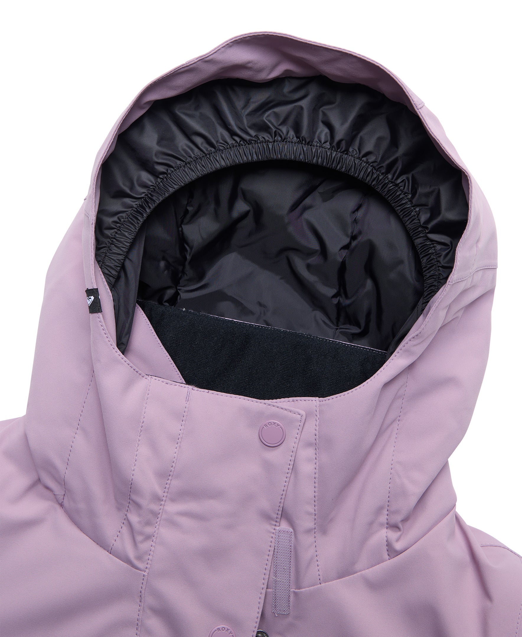A fixed helmet-compatible hood with built-in gaiter keeps you covered, while critically taped seams and a snap-away powder skirt seal out snow. The woven labels at the hood and back hem add signature Roxy flair, and the zippered chest pocket plus roomy hand pockets keep your essentials close.
