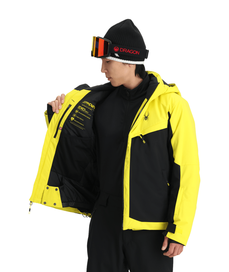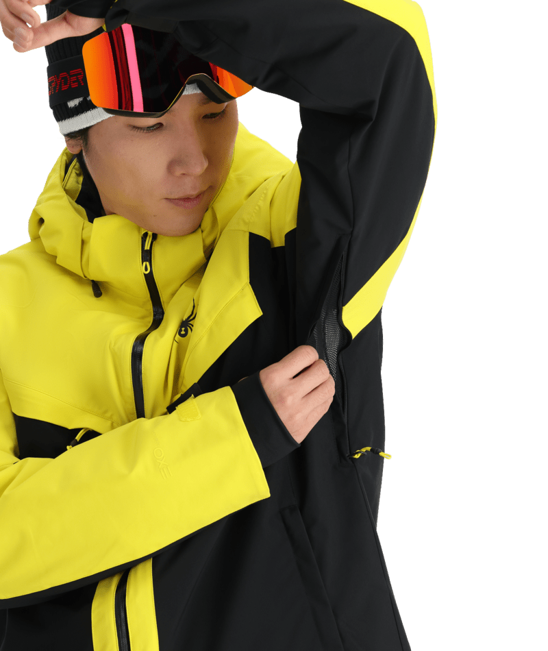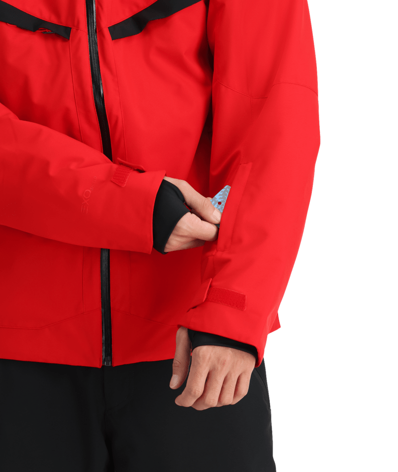 The Copper is packed with PrimaLoft® Black Eco insulation (80g) to ensure warmth in frigid conditions. Four-way stretch EXO SHIELD 20K/20K fabric made from recycled polyester protects against harsh winter weather. With bold new colorways and the symmetric design, it's a quintessential Spyder jacket.