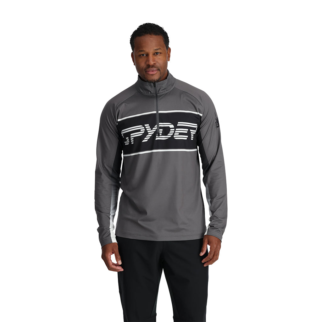 The Paramount ½ Zip has all of the qualities you expect from a top-tier t-neck, while sporting classic color blocking with the Spyder wordmark proudly across the center front. 360º stretch polyester is moisture-wicking and moves with you whether you're rocking this ½ zip as a base layer on the mountain or as a light layer around town on a warm spring day.