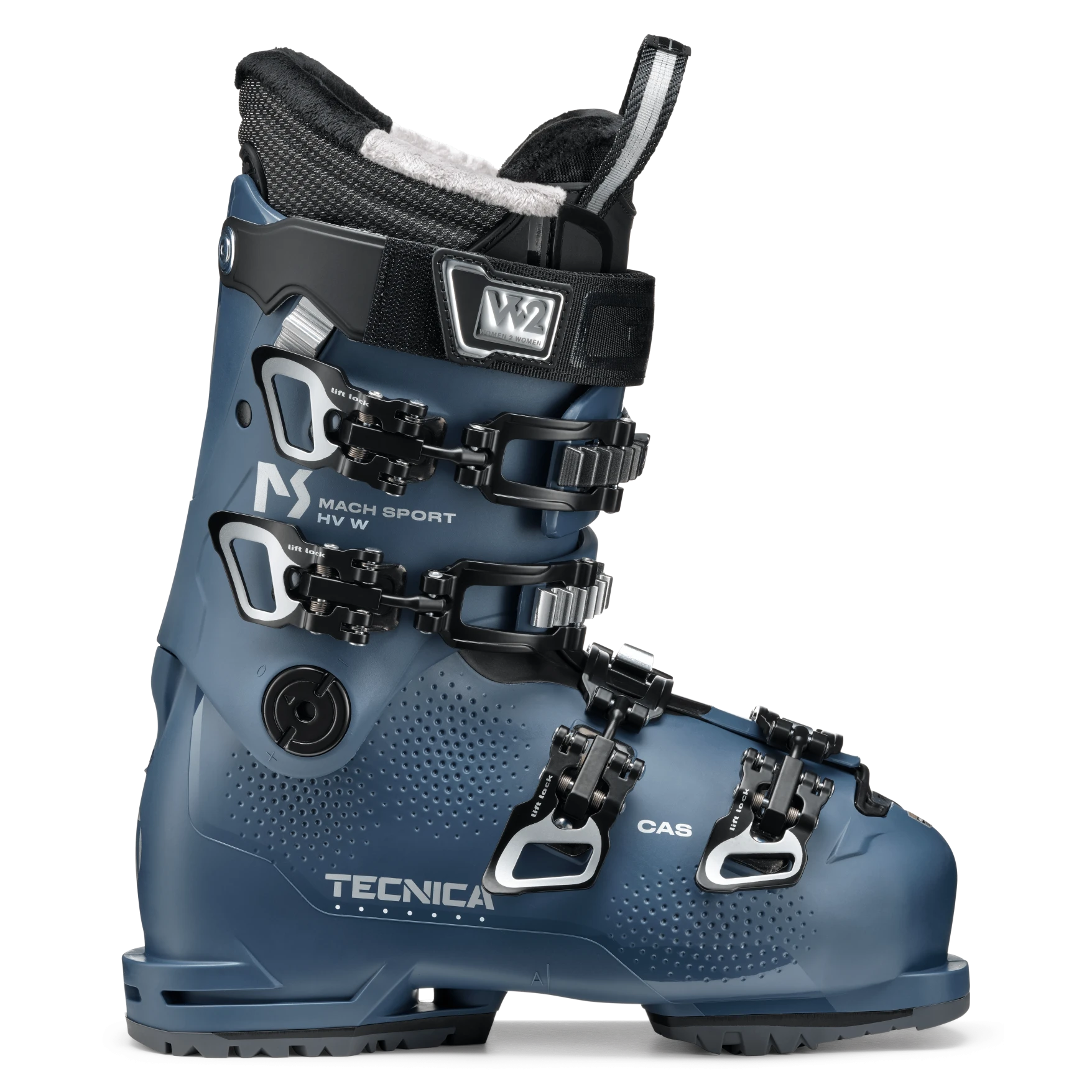 It is often said that the best skiers are the ones who are having the most fun. For beginner to intermediate skiers, comfortable feet are key to that equation. The Mach Sport HV 75 W was designed with that in mind, with women’s specific features and an anatomically shaped last ideal for skiers with higher volume feet. Women’s specific features include the Cuff Adapt System, which quickly and easily adjusts volume around the calf to fit a variety of lower leg shapes, and the Women's Natural Stance, which places you in the perfectly balanced position. The Comfort Celliant liner provides a comfortable fit and increases circulation for optimized warmth and performance. If needed, you can also add personal customization with Tecnica’s C.A.S. system to solve any additional fit problems. The 75 flex is perfect for making turns on groomers and in soft snow, while the Double Quick,Instep and Lift,Lock buckles make for easy entry and exit. The Mach Sport HV 75 W give your feet the warmth, comfort and support you need so you can enjoy a full day on the mountain.