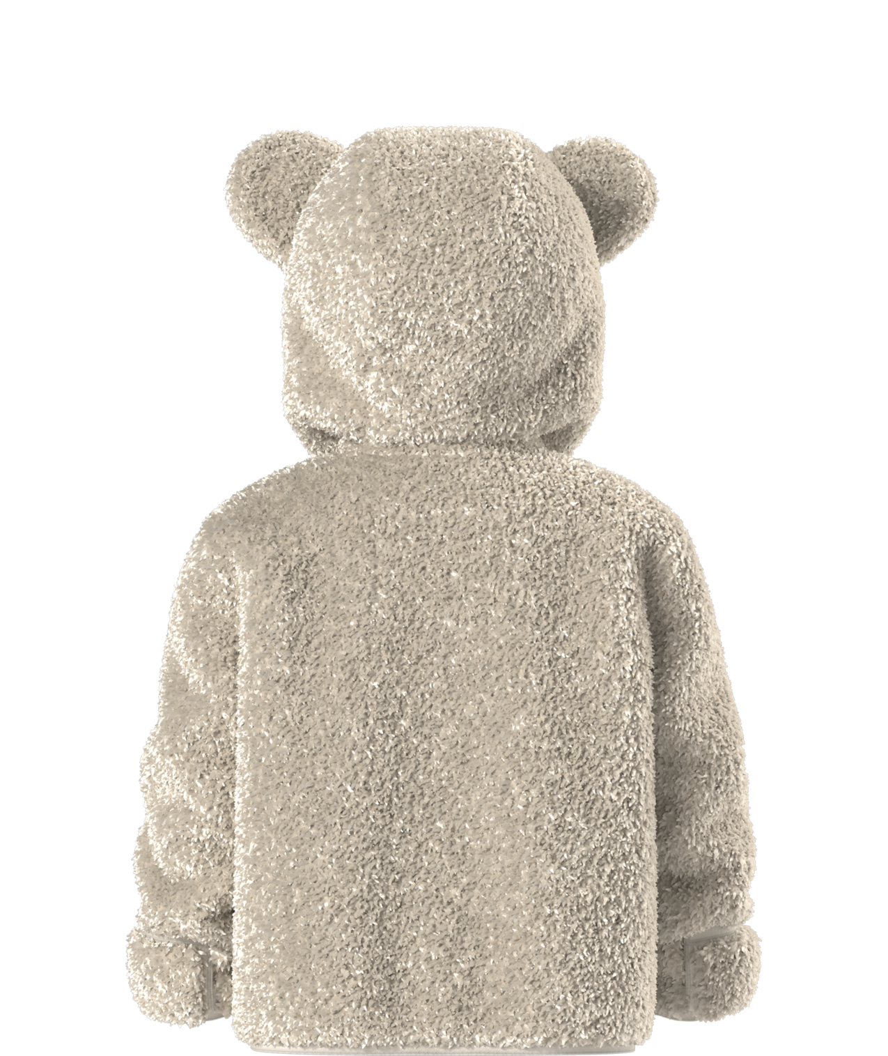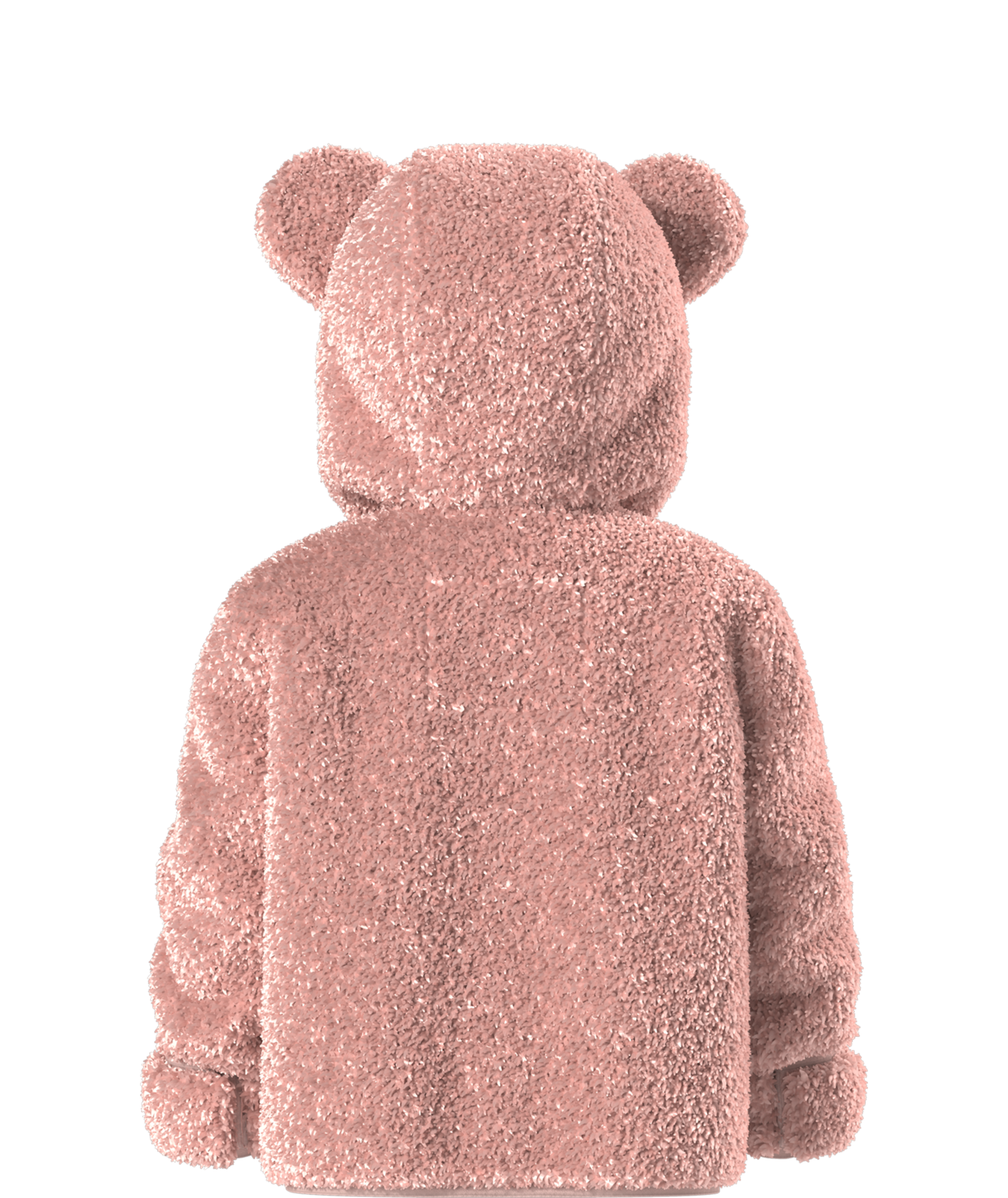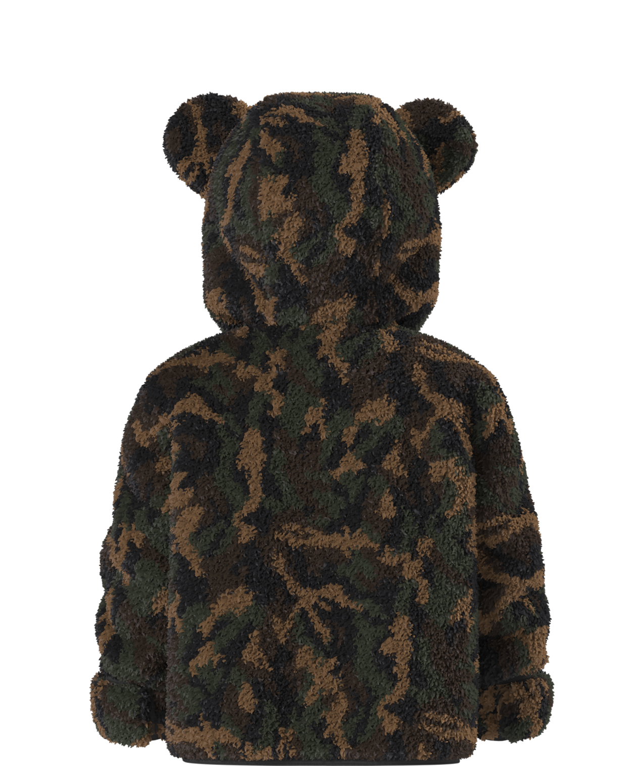 - Attached, three-piece hood with self fabric bear ears
