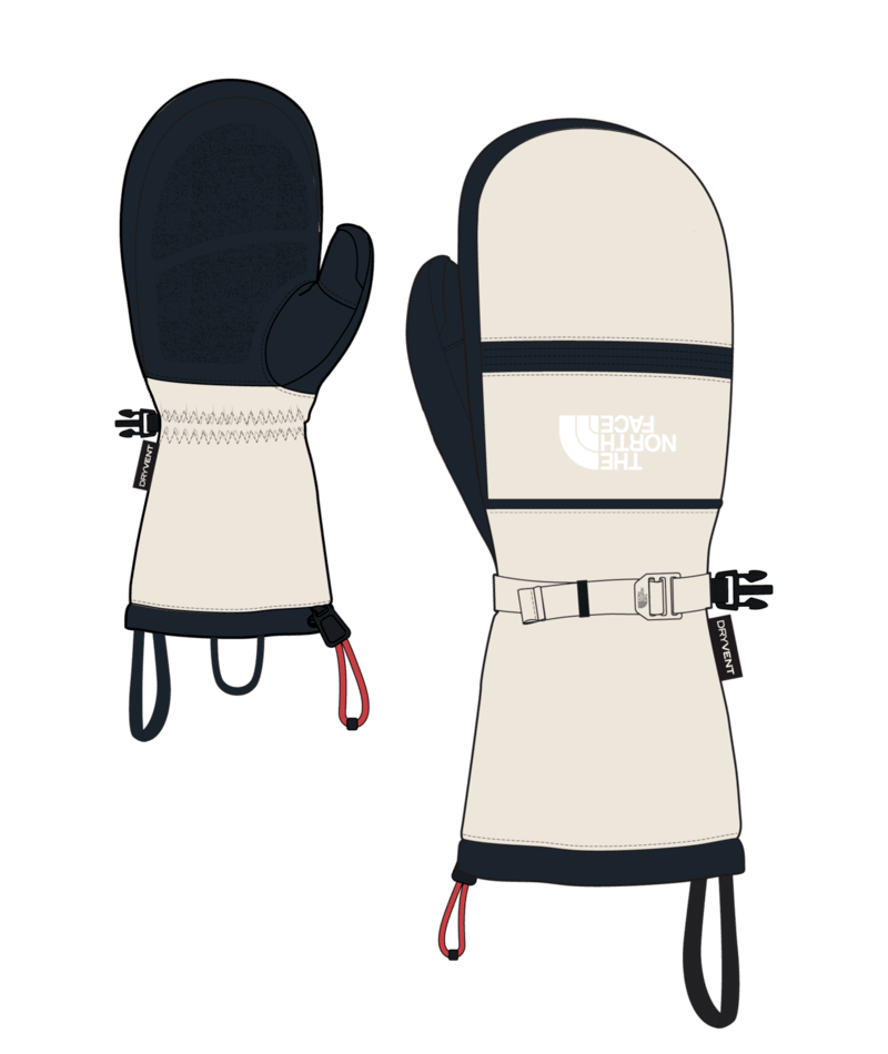 - Webbing strap with a buckle on back of hand and shockcord with a cord lock at gauntlet hem for an adjustable fit