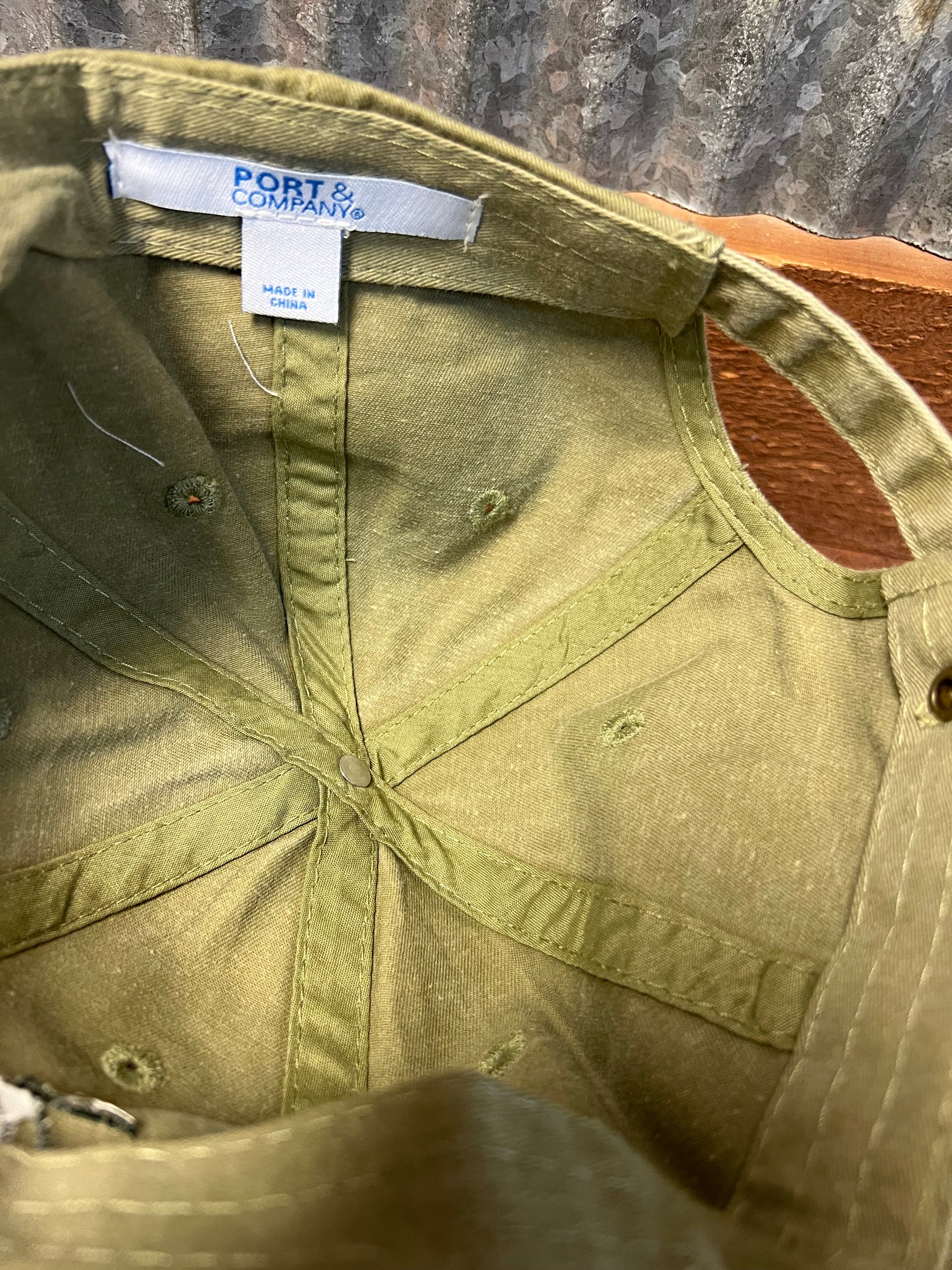- Closure: Self-fabric slide closure with brass buckle and grommet
