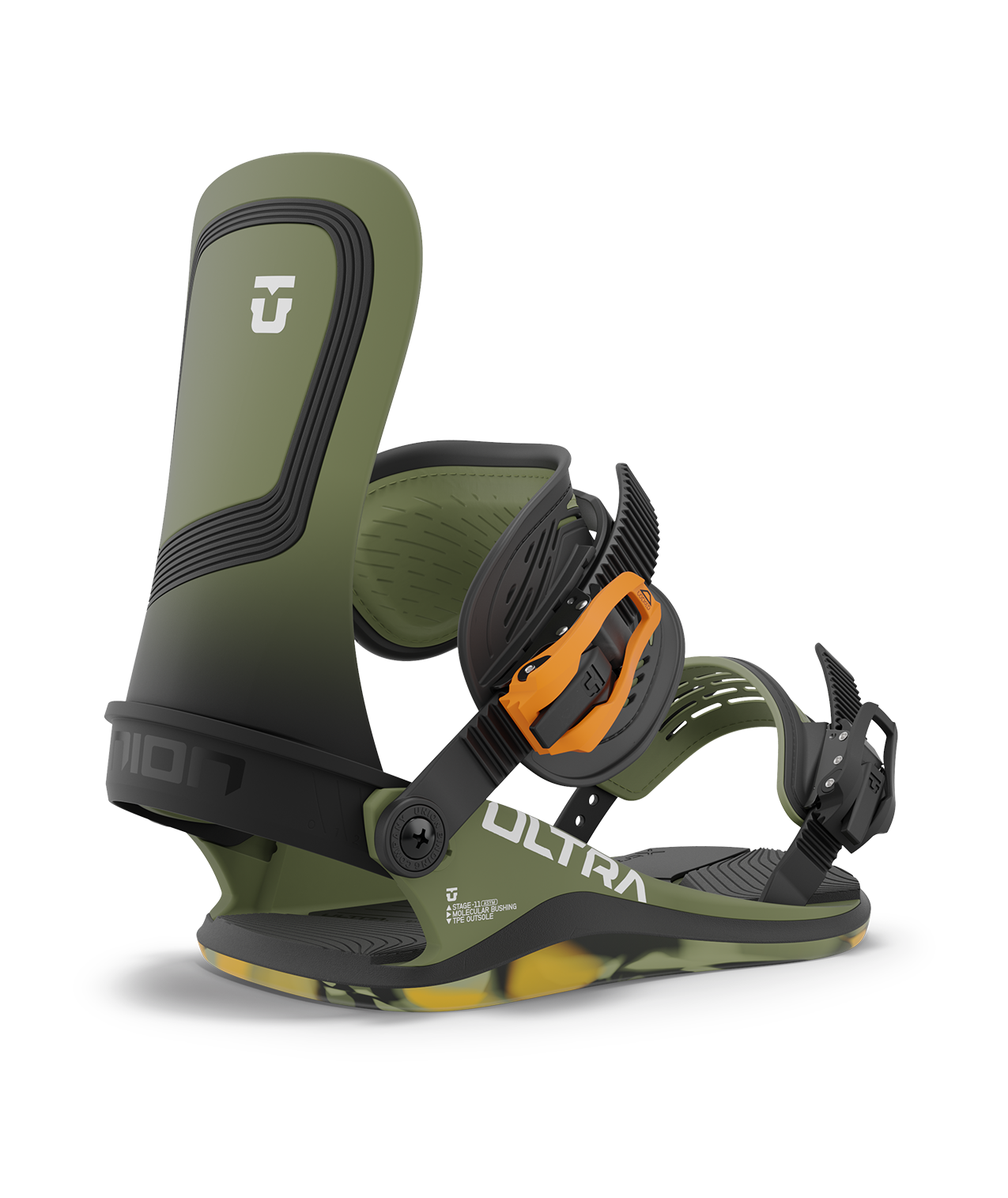 Spring-loaded take offs and perfectly cushioned landings. The Ultra utilizes the latest in Union’s manufacturing capabilities to redefine how a freestyle binding should ride. Every component of the Ultra acts as a suspension system for your boots, loading and unloading with each movement as you snowboard.