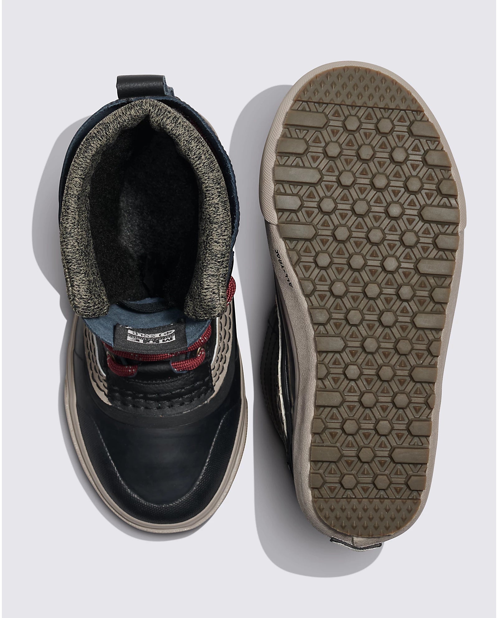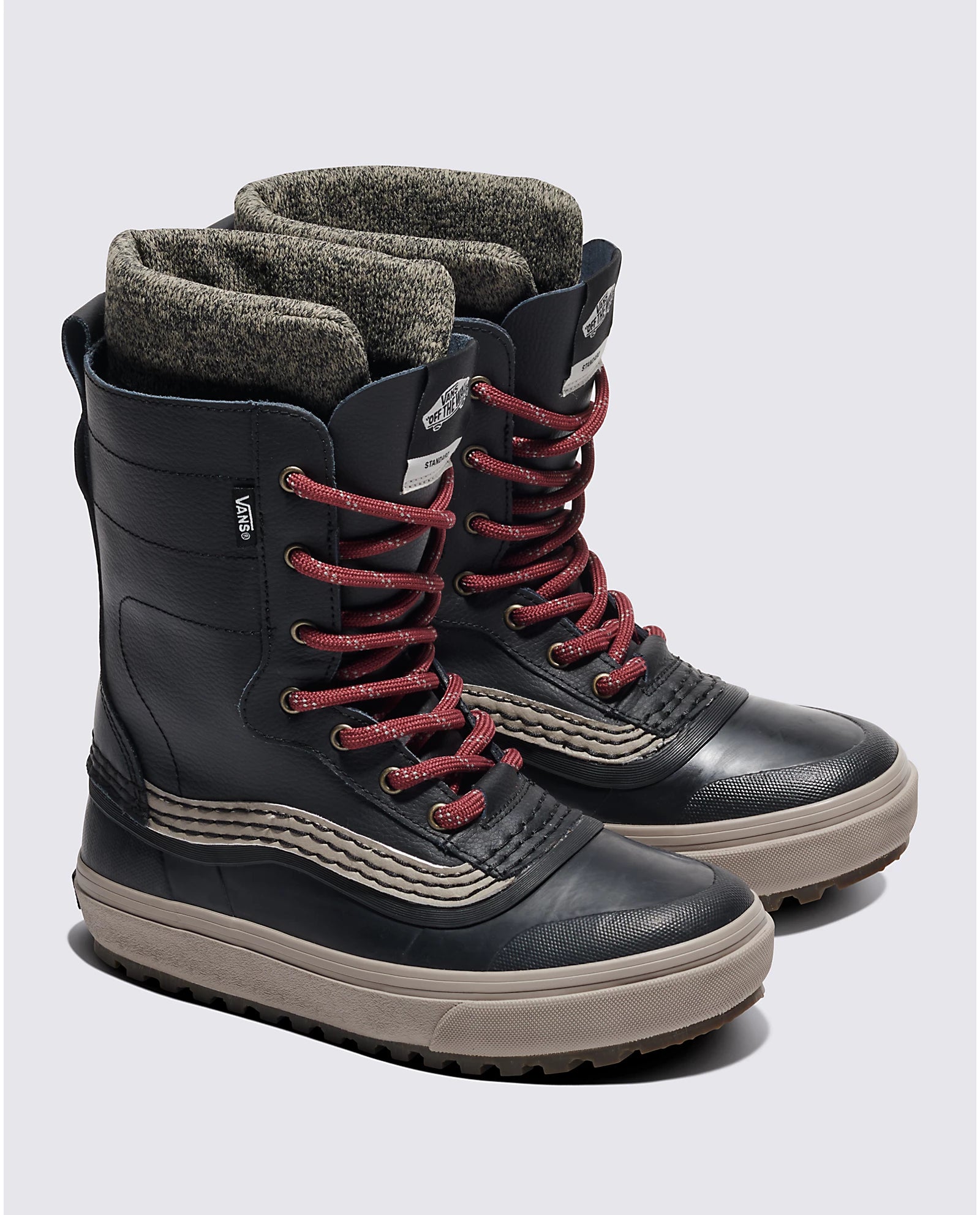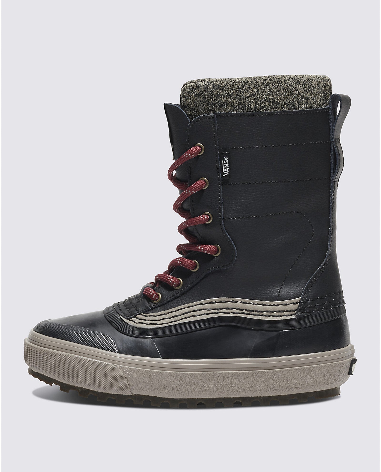 The Standard Waterproof Boot is the modern standard in winter boots—waterproofing, warmth, and traction wrapped in Vans style. Complete with a waterproof vulcanized look, heavy-duty felt liner, and Standard Snow MTE outsole featuring All-Trac all-terrain rubber, this Sidestripe snow boot is a contemporary cold weather classic in the Vans family, and the obvious choice for all your winter needs. It is made with leather and rubber uppers.