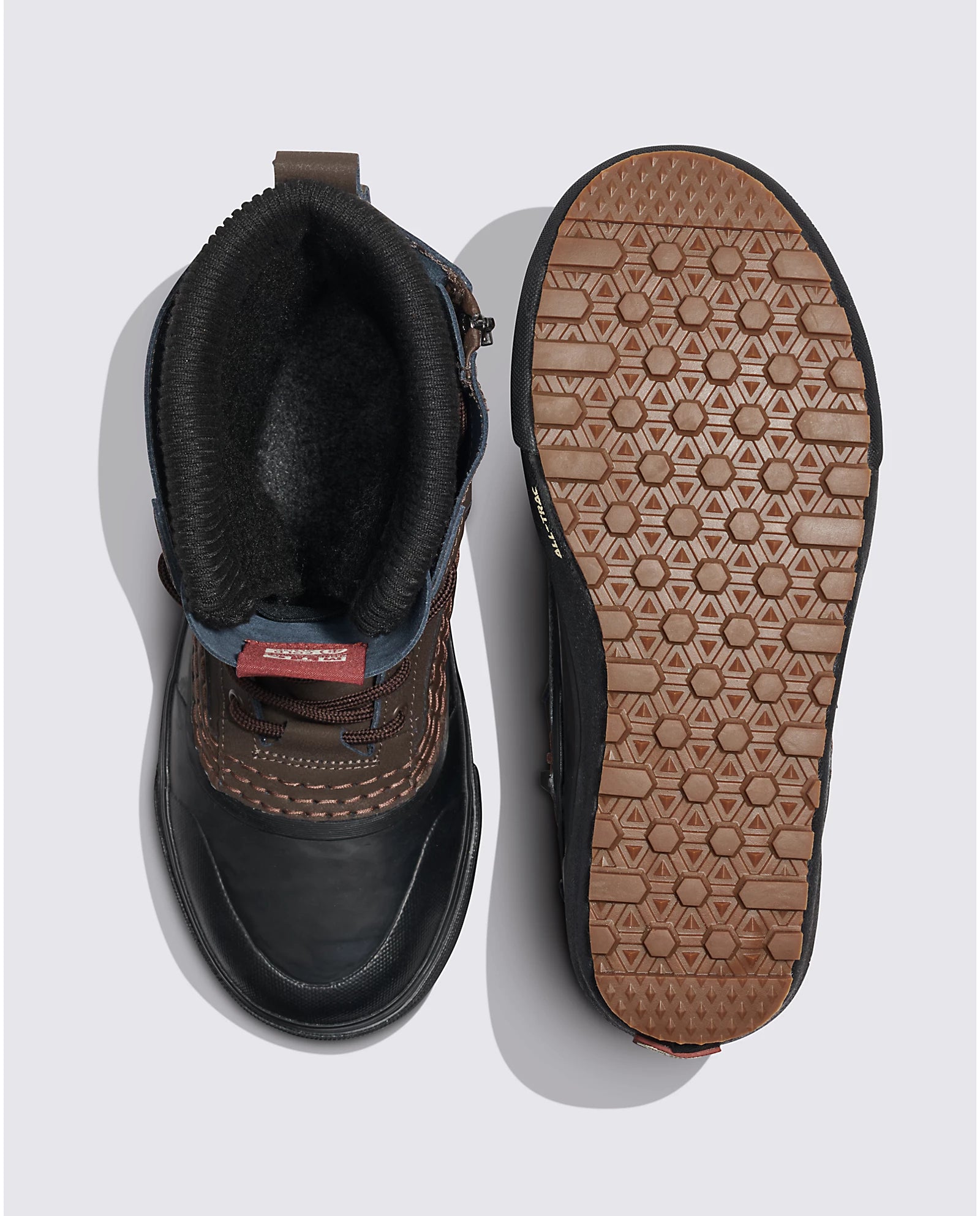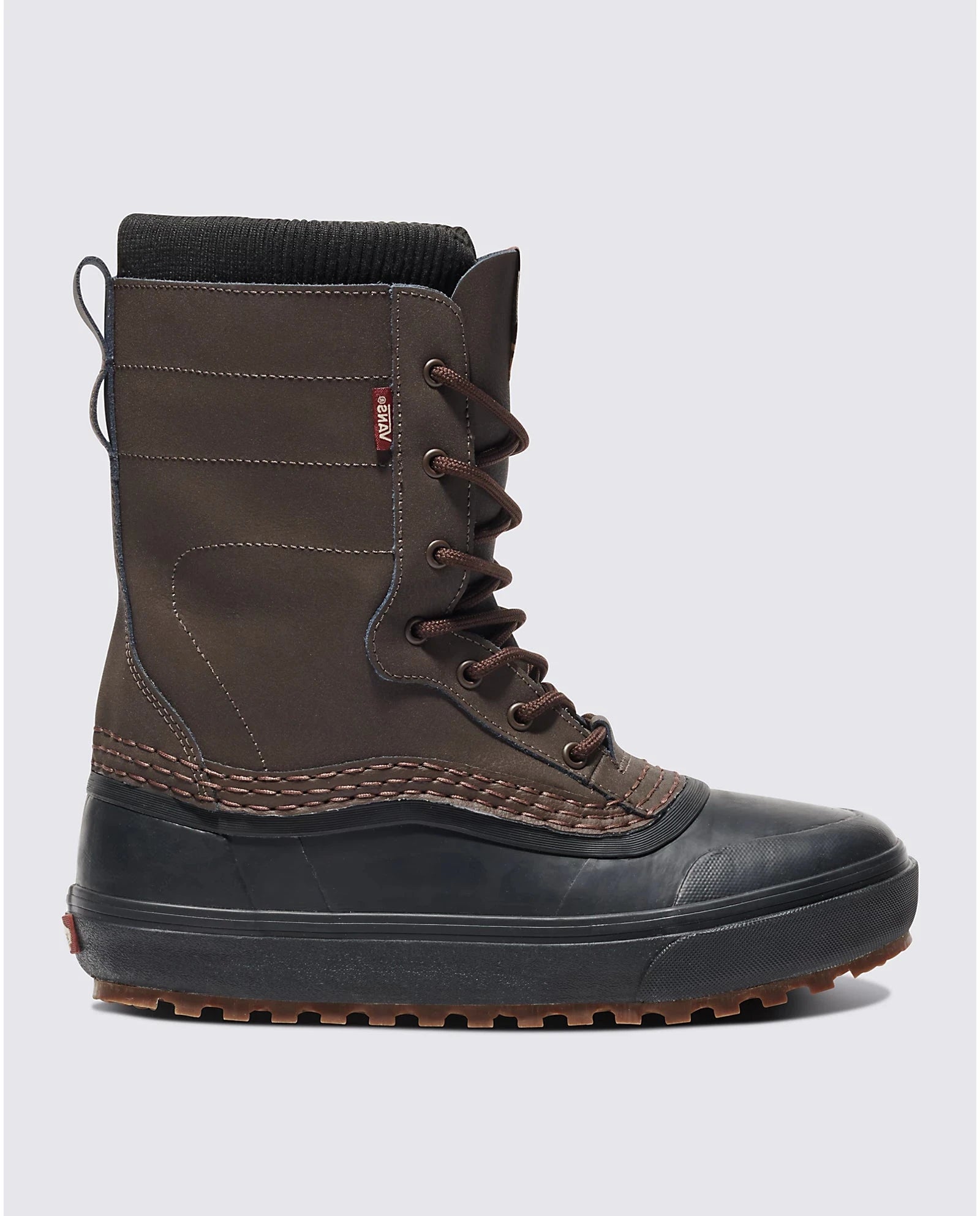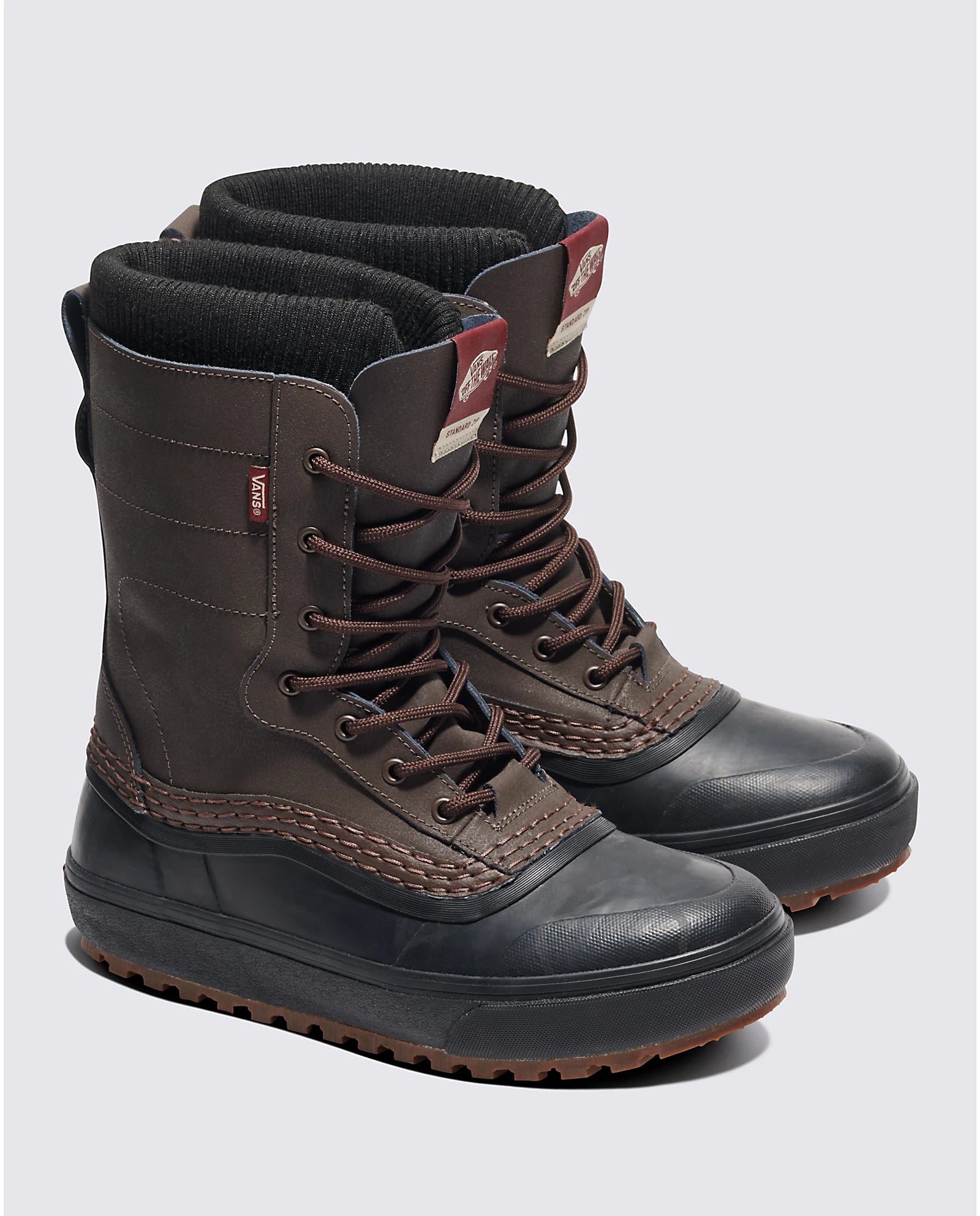 The Standard Zip Waterproof Boot brings ultimate convenience to the Standard family with a waterproof medial zipper for added entry and exit simplicity. As with all Standard models, the waterproof vulcanized lower keeps you dry, the removable felt liner offers next-level warmth, and the Standard Snow MTE outsole featuring All-Trac all-terrain rubber is designed to provide excellent traction. Weatherproofing and classic Vans style put the Standard Zip Snow MTE in a class of its own. It is made with leather and rubber uppers.