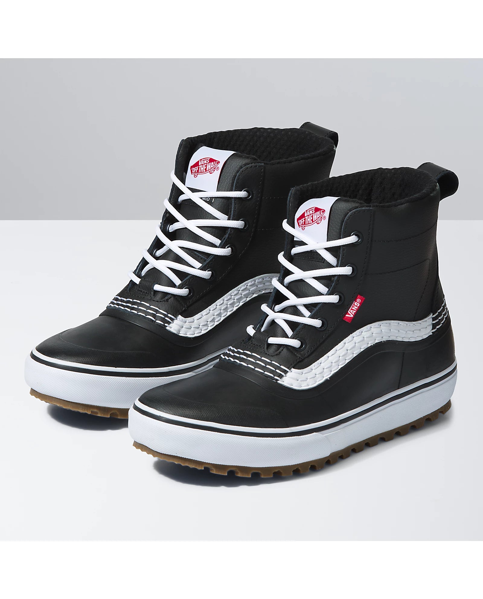 Practical, packable, and wear-at-the-bar-able, the Standard Mid Snow MTE is a downsized version of Vans’ best-selling Standard Snow MTE snow boot. With a waterproof vulcanized lower, waterproof seam-sealed construction, a Standard Snow MTE outsole featuring All-Trac™ all-terrain rubber, and a 100-gram weight insulation package, classic Vans style and day-to-day winter weather footwear have finally converged. This mid top boot is made with leather and synthetic uppers.
