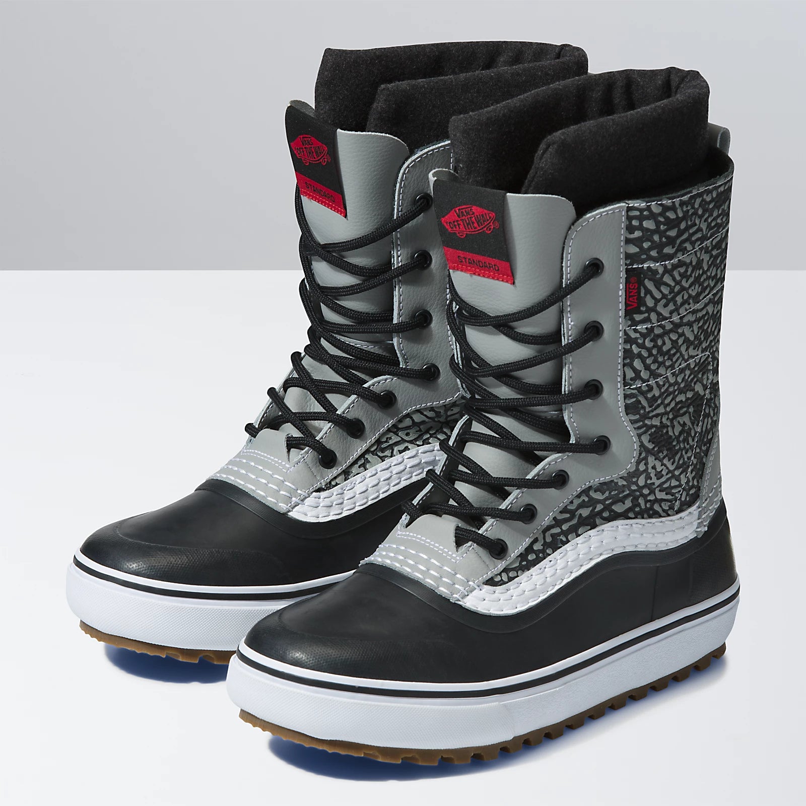 The Standard snow boot is the newest standard in winter bootstraction, warmth, and weatherproofing wrapped in Vans style. Complete with the classic vulcanized look, MTE 2.0 outsoles, and signature sidestripe, the Standard is a new classic in the Vans family. It also features removable felt liners, waterproof rubber lowers, and waterproof seam-sealed construction to keep your feet warm and dry. Whether youre enjoying an après, shoveling the driveway, or binding-less pow surfing, the Standard boot is the obvious choice.