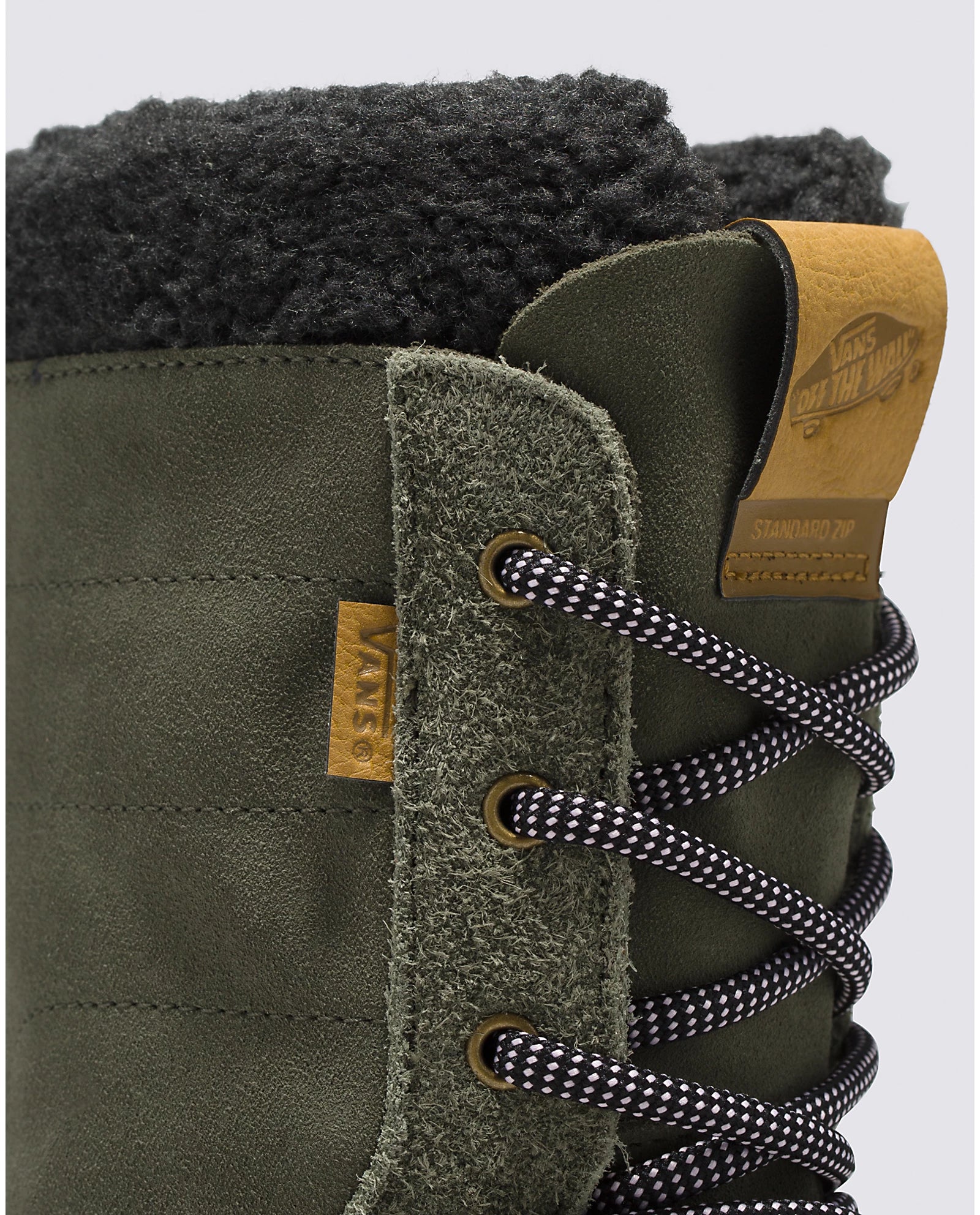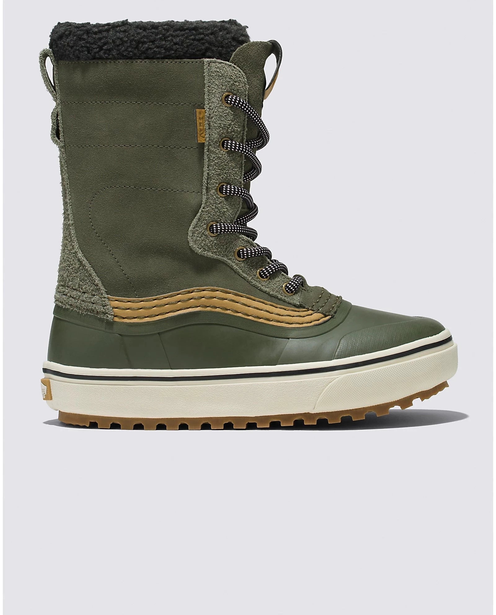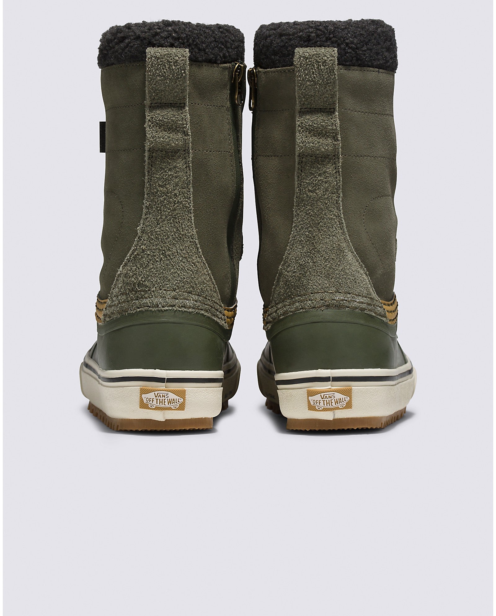 The Standard Zip Snow MTE brings ultimate convenience to the Standard family with a waterproof medial zipper for added entry and exit simplicity. As with all Standard models, the waterproof vulcanized lower keeps you dry, the removable felt liner offers next-level warmth, and the Standard Snow MTE outsole featuring All-Trac all-terrain rubber provides excellent traction. Weatherproofing and classic Vans style put the Standard Zip Snow MTE in a class of its own. It is made with leather and synthetic uppers.