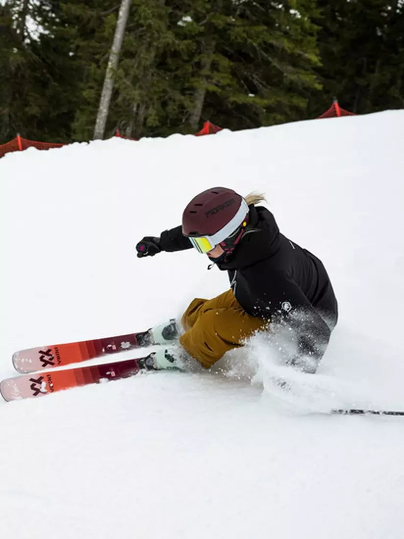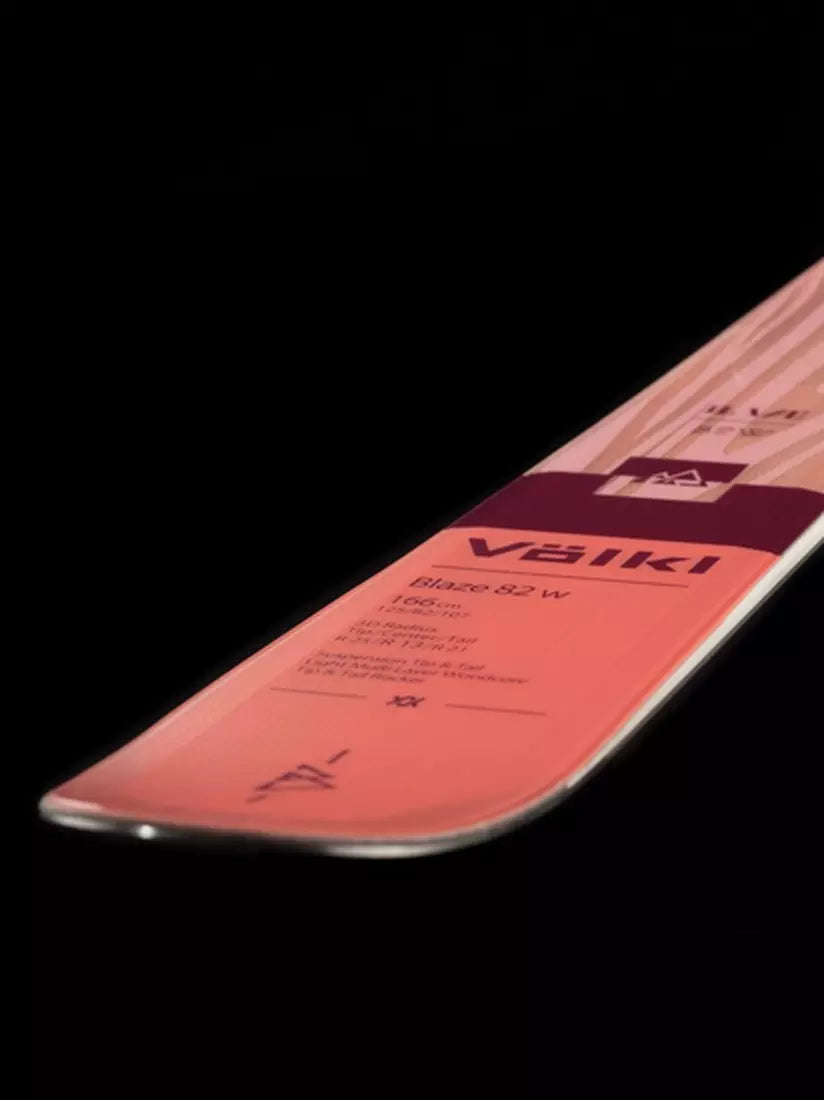 The Volkl Blaze 82 Womens ski is the latest addition to the Blaze series. It boasts an impressively lightweight design thanks to its extra-light tip-to-tail wood core. The Blaze 82 is not only versatile and suitable for entry-level ski touring, but also provides the necessary stability in demanding snow conditions. It also features Suspension Tips & Tails, which is a new technology from the brand. These inserts made of elastic, rubber-like material on the edges of the tip and tail cushion the initial contact between the ski and the snow, ensuring smooth turn initiation and good handling.
